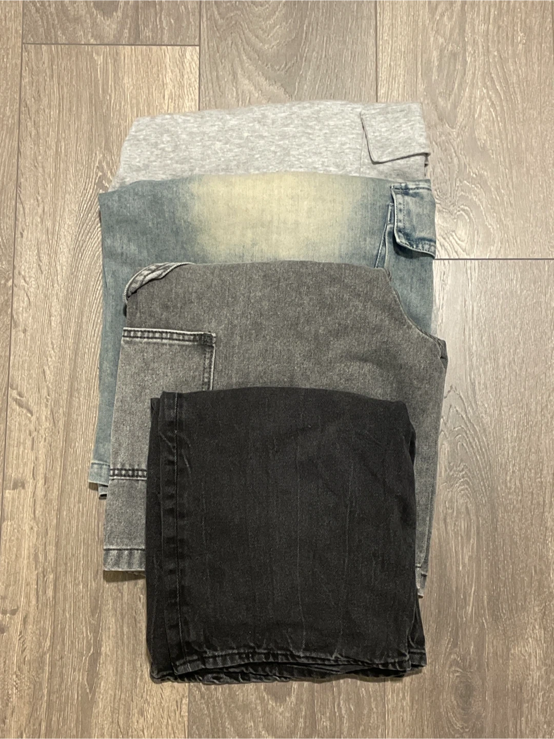 These Bermuda pants are unisex so anyone can wear them. The shorts fits people that are about 13-15 years old, and I only take cash right now. Black jean Bermuda (1st photo) - $5 Black jean Bermuda (2nd photo, never worn) - $20 Blue jean Bermuda - $10 Sweatpants Bermuda - $15 All four of them for $45