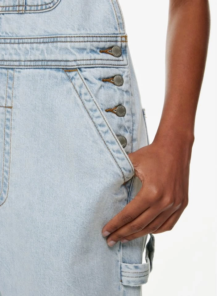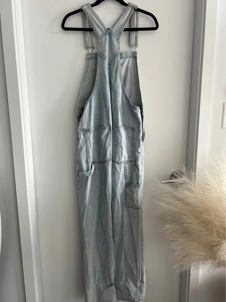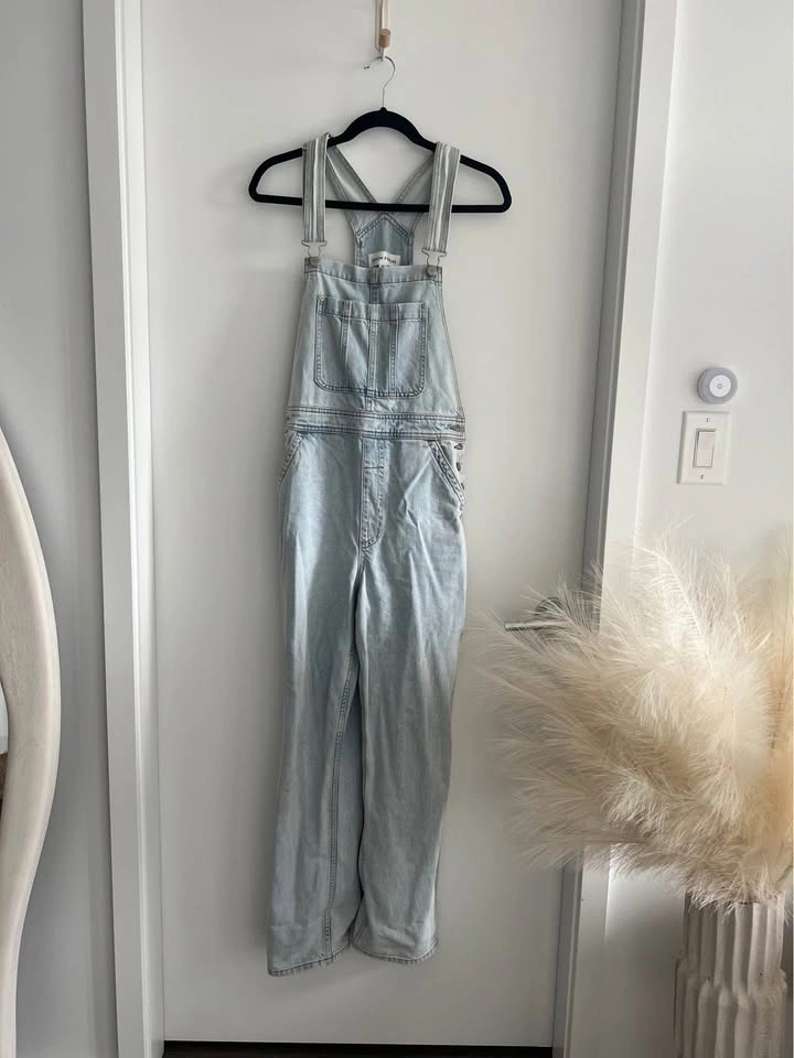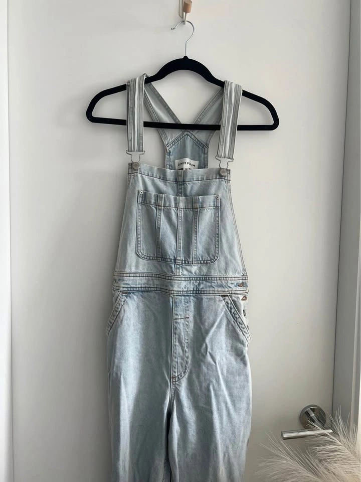 Great condition. Size: S. Wash color exactly like model reference. Inspired by vintage streetwear, The ’90s Baggy Vintage Overalls feature an oversized fit with a straight leg and a front pocket bit. They're cut from soft, lightweight non-stretch denim from Japan. This version comes in a light indigo wash with a clean hem. Pick up Burnaby