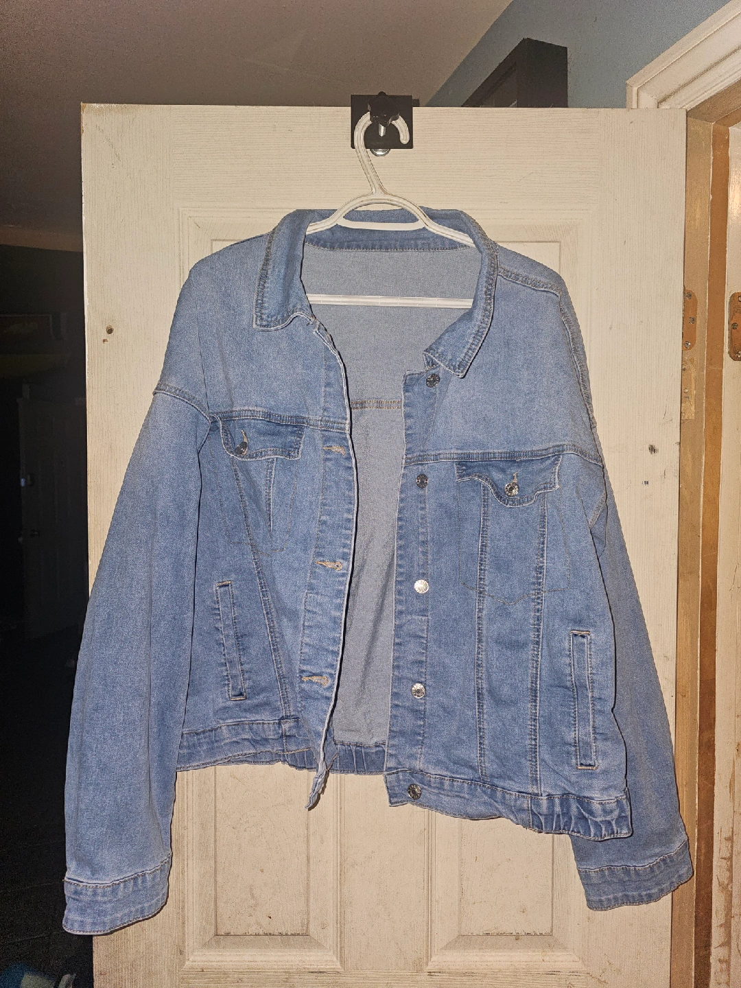 90A light wash denim jacket, perfect for layering! It's in great condition and ready for a new home. A classic piece to add to your wardrobe