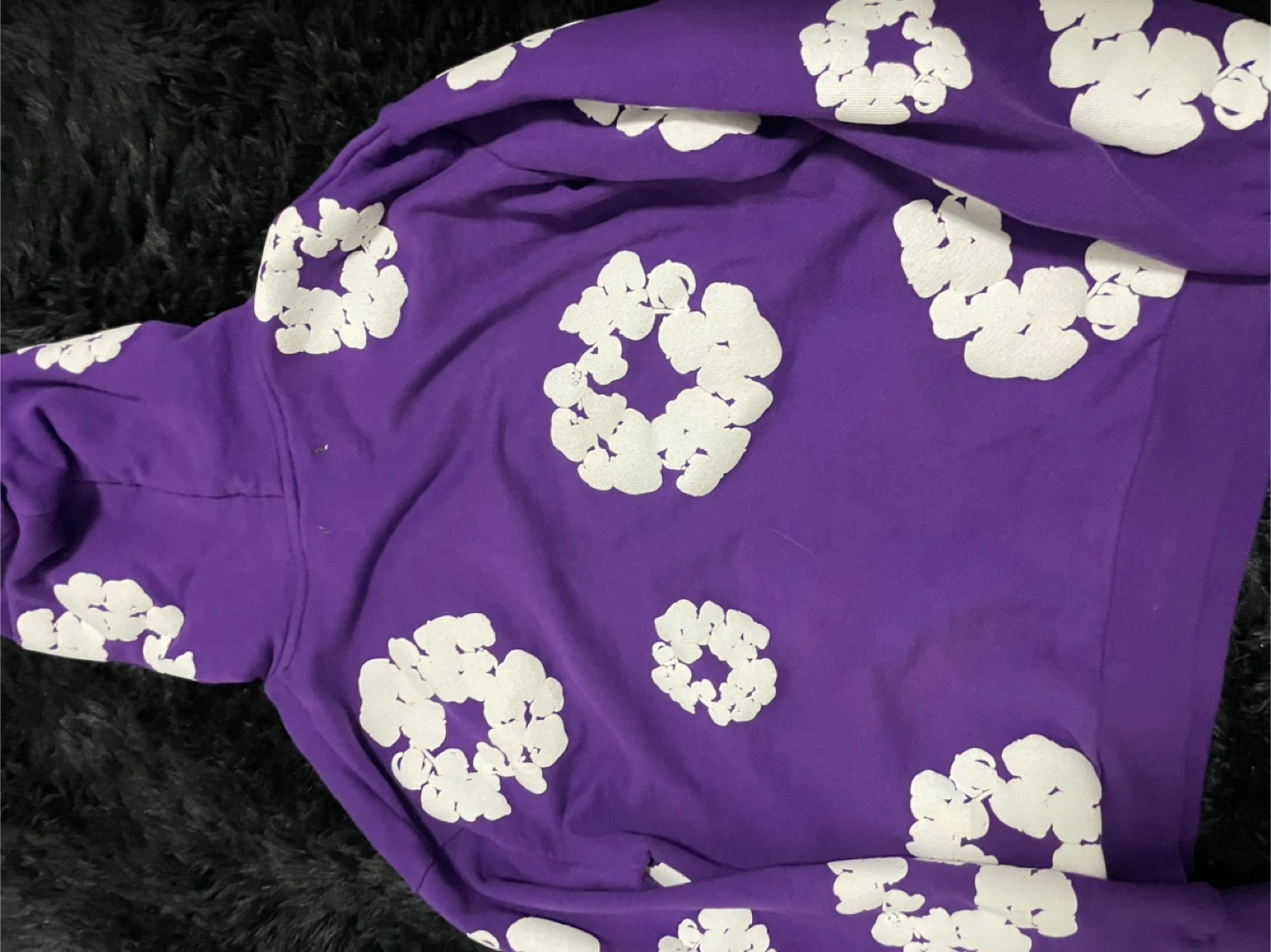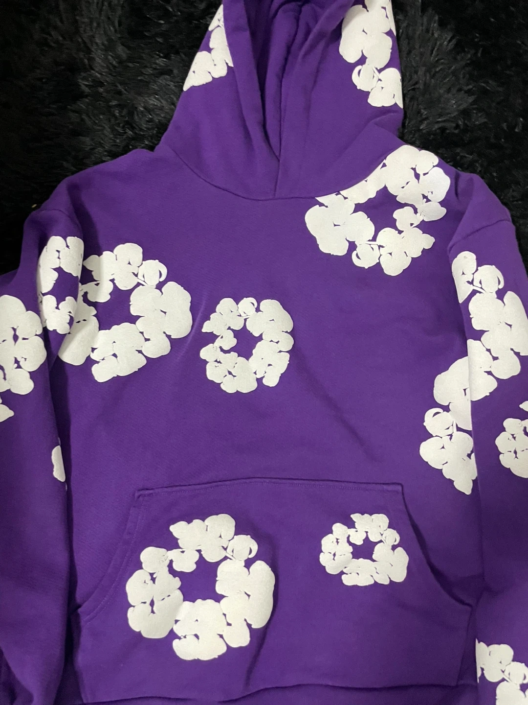 12Selling a Denim Tears hoodie from the African Diaspora Goods collection. It's a size medium and features a unique floral design in white on a purple base. Made in Portugal, this hoodie is sure to make a statement!