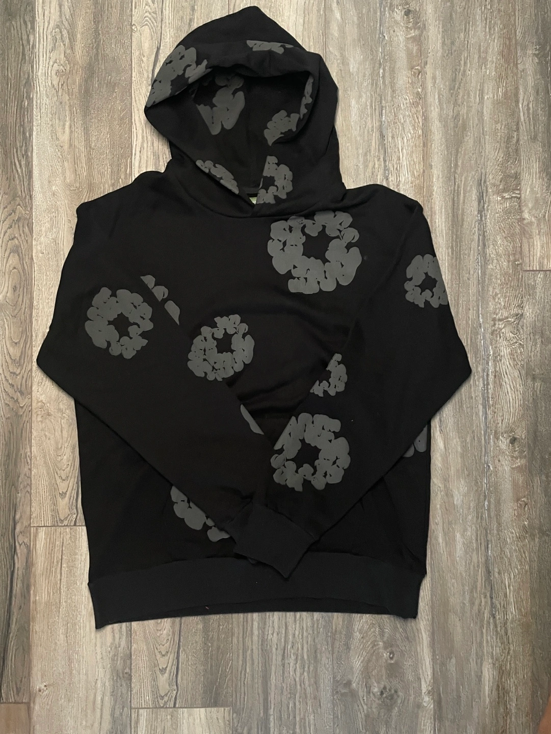 Cotton Wreath-print hoodie Highlights, black,cotton, all-over graphic print,classic hood, front pouch pocket,long sleeves also When purchasing this unisex item, keep in mind that it is graded in standard men's sizing.