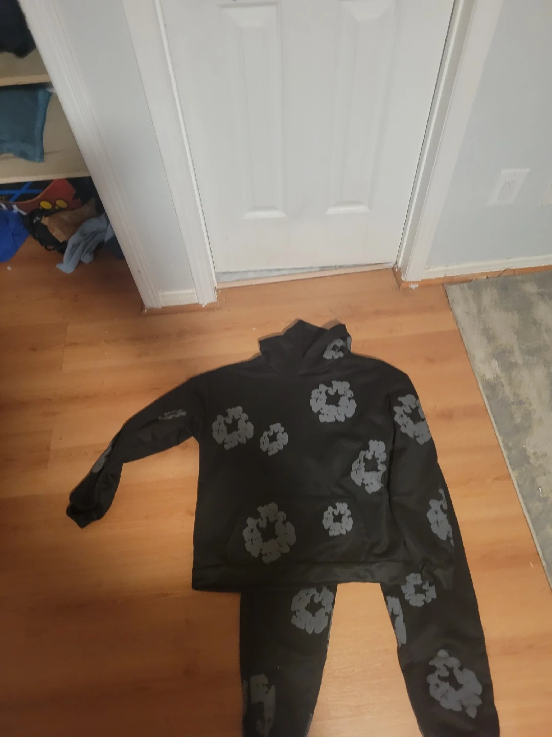 Denim Tears Black Floral Hoodie & Sweatpants Set