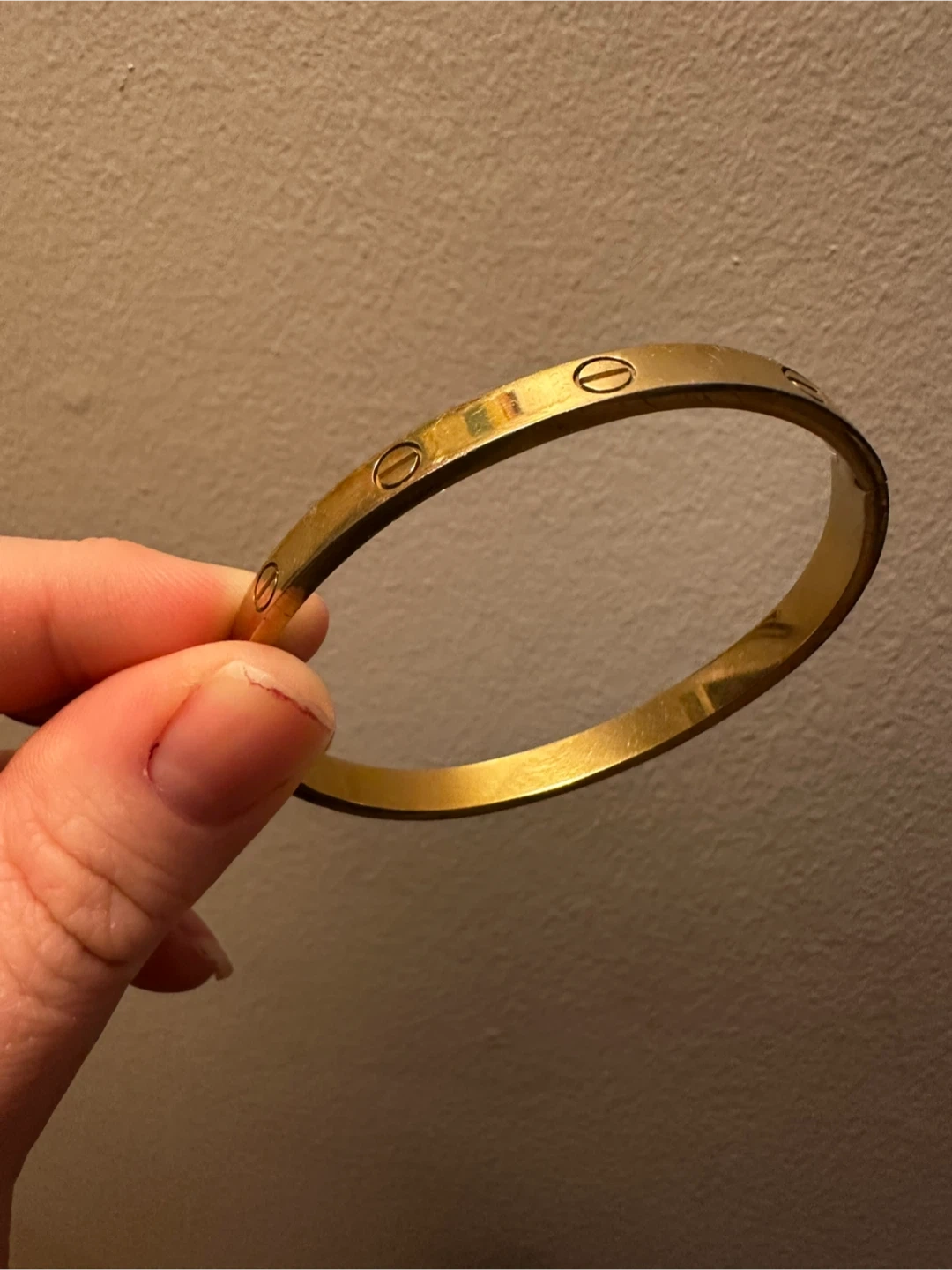Buy & SellGold Tone Screw Detail BangleGold Tone Screw Detail Bangle$30A classic gold-tone bangle bracelet with screw details.ConditionGoodWHERE TO MEETWoodfieldView MapSELLERKayleyCentral London100 reviews0 chats·0 favorites·23 viewsSEND CHAT TO SELLERHi Kayley! I’m interested in your listing.Hi Kayley! I’m interested in your listing.Get the Karrot app to chatSign In to chat