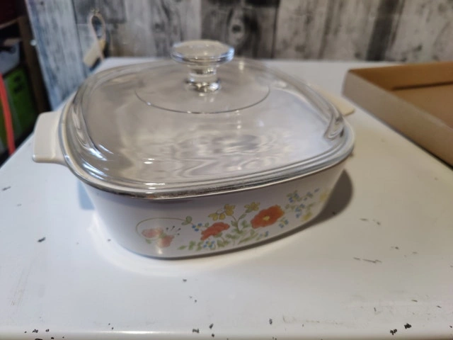 I have a vintage casserole dish from Corningware. These are collectible, but we have a different pattern. Used - Good. Vintage, Antiques.