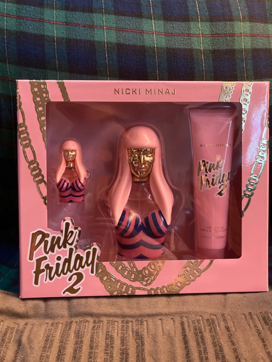 New, unopened Nicki Minaj Pink Friday 2 gift set. Includes perfume, body lotion, and a smaller perfume bottle.