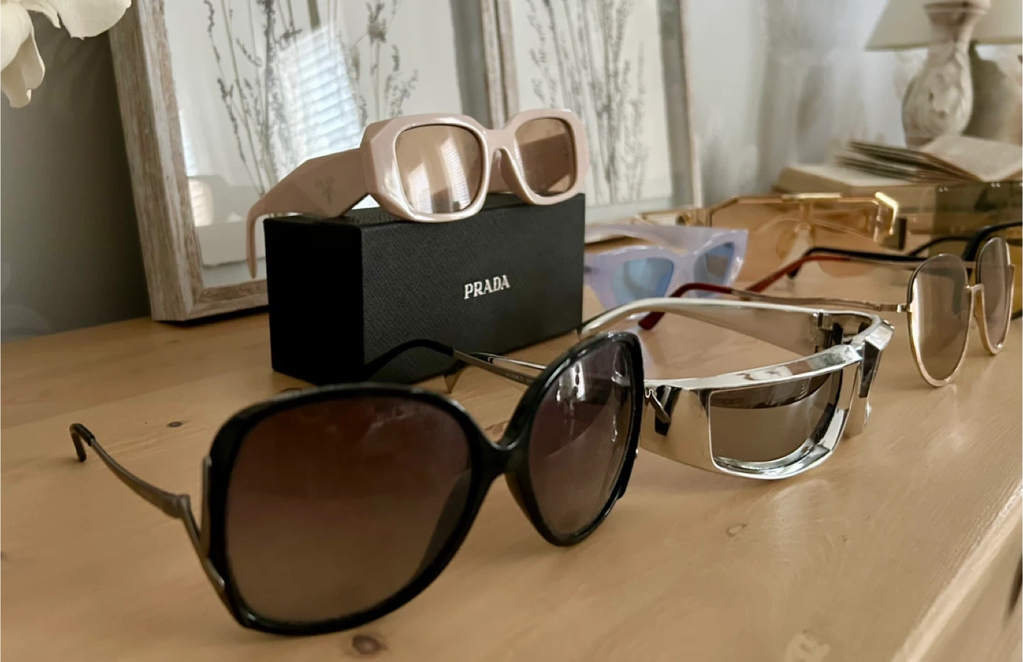 Selling a collection of stylish sunglasses from various designers, including Prada. Prices vary from $15-$100 depending on the choice.