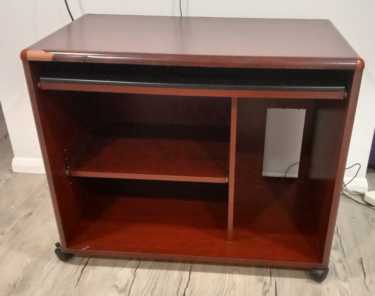 28A rolling computer desk with a keyboard tray and storage space. It's in good condition and perfect for a home office or study area. It has some wear and tear but still works great. Length 35 inch, Width 19.5 inch, Height 29.5 inches (including the wheels). Very sturdy and in good condition. Pick up near Keatsway public school Waterloo. I'm looking for a mop or queen size bedsheet or offer your trade.
