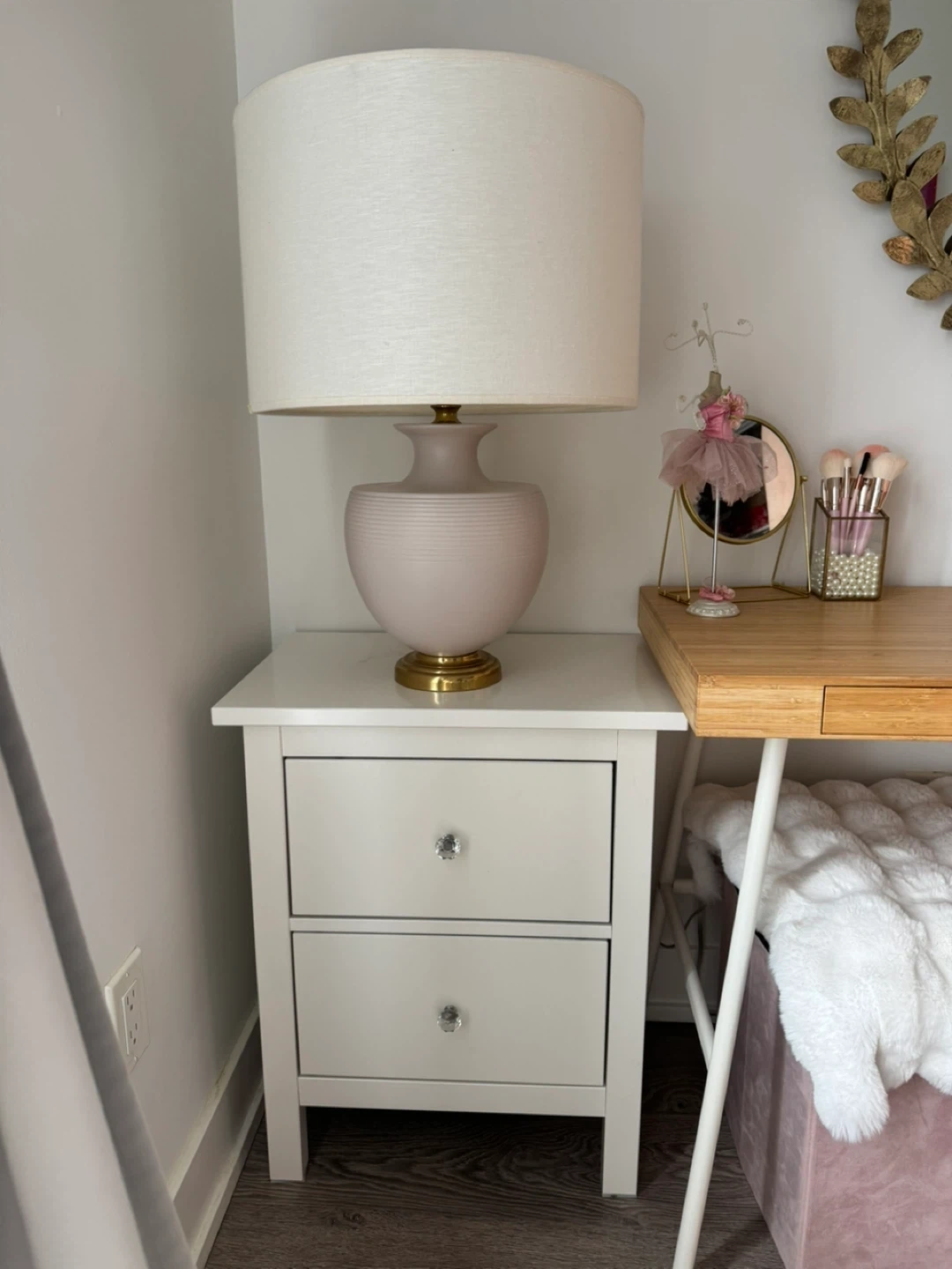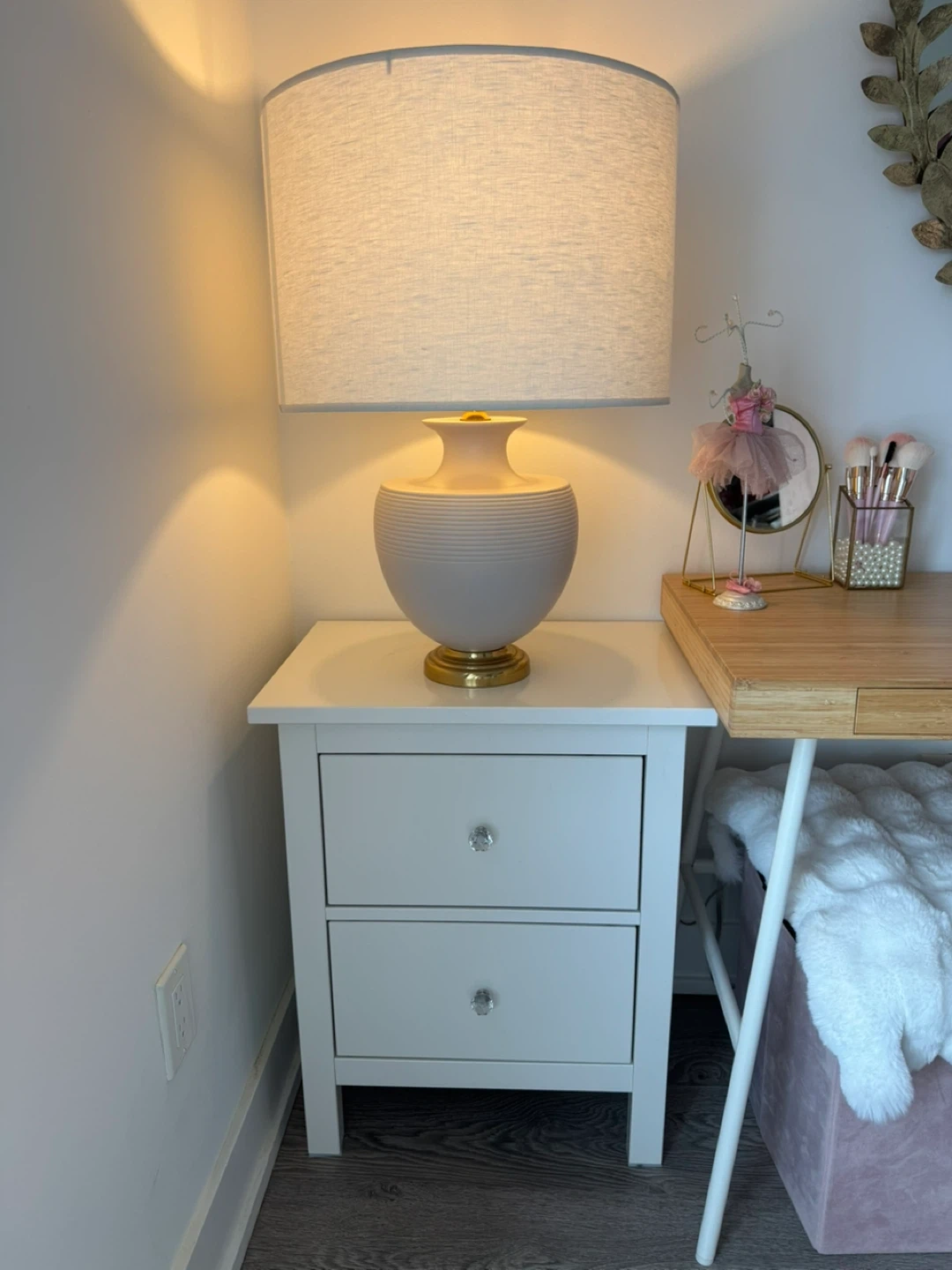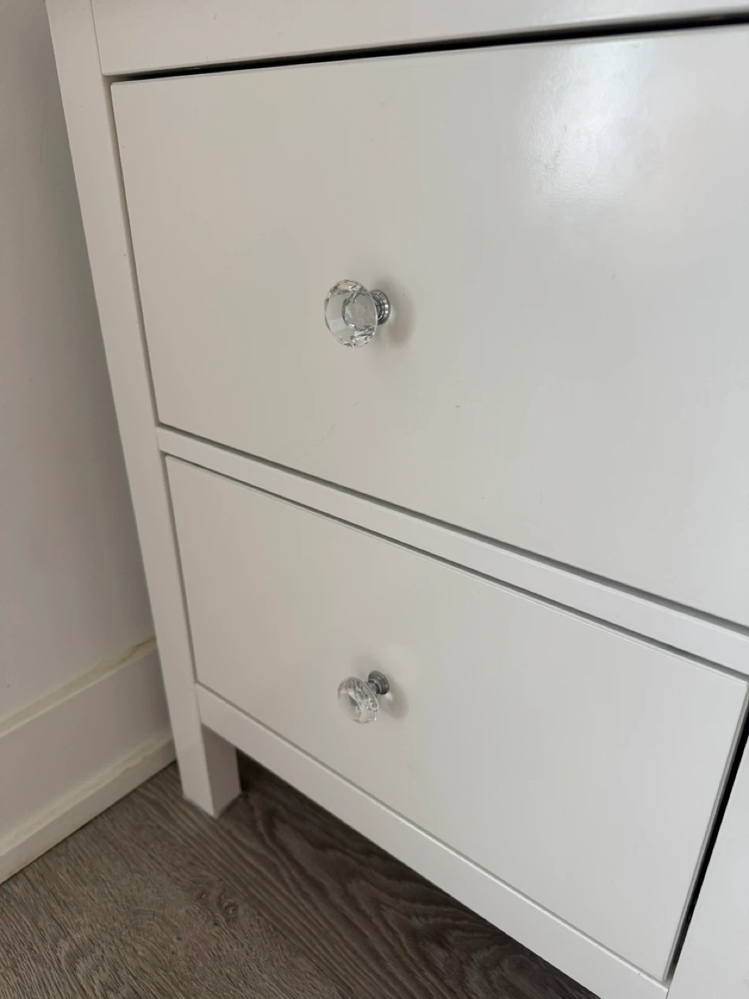 White Two-Drawer Nightstand with Crystal Knobs