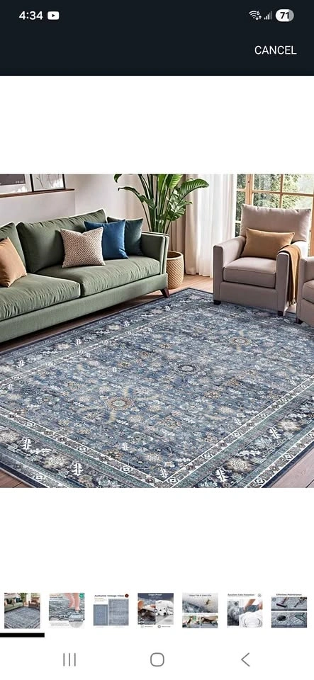 Brand new 12 x 9 vintage living room area rug. Large, soft, washable oriental traditional distressed farmhouse rug for bedroom, indoor floor accent carpet for home office house decor. Pet free and smoke free home.