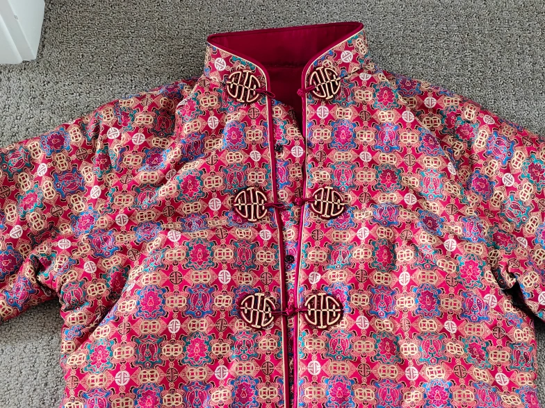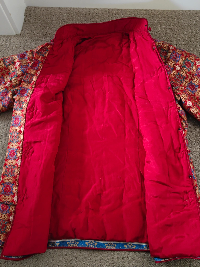 I am selling a Women Traditional Chinese Cheongsam Blazer / Dress Suit Jacket / Qipao Mandarin Style Jacket in used, like-new condition. No rips, tears, or stains. The jacket is lined, has 4 snap button closures in the front, and 5 knot and loop button closures in the front. Ideal wear for a wedding banquet, anniversary event, birthday party, Chinese Lunar New Year and other festivals, etc. The Chinese style designs suit both casual and fashionable wear.