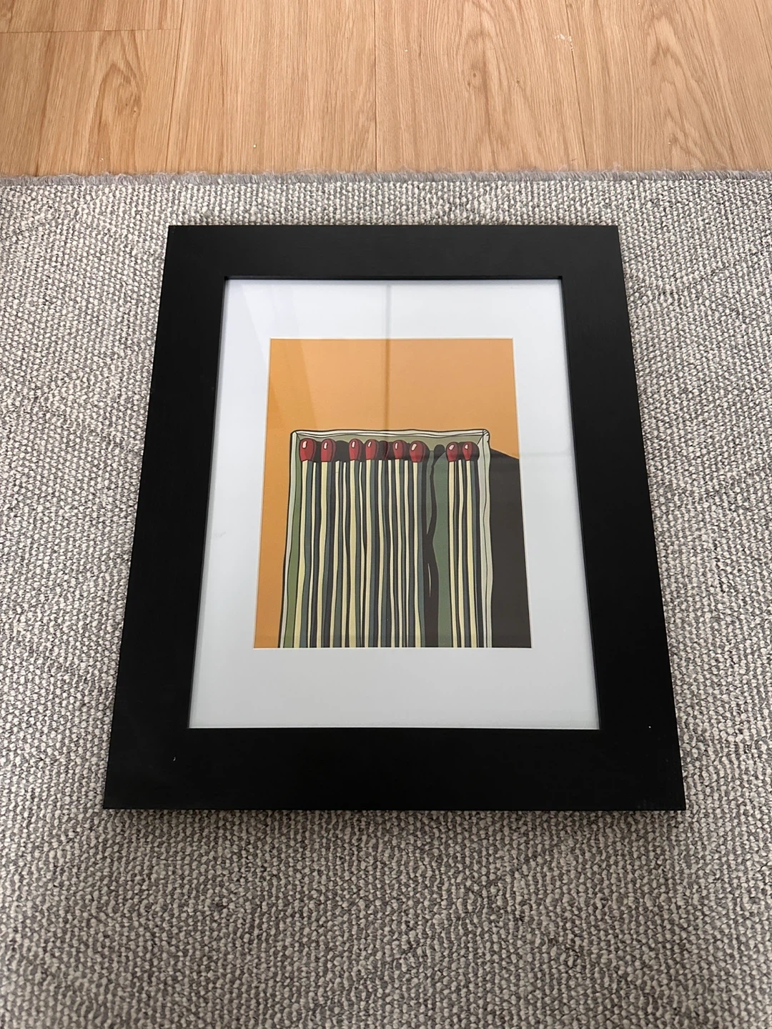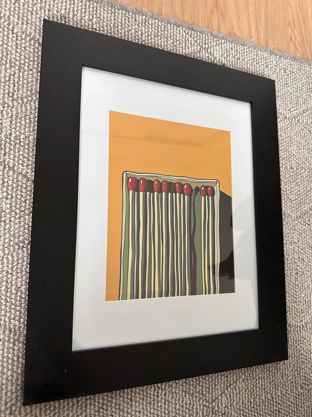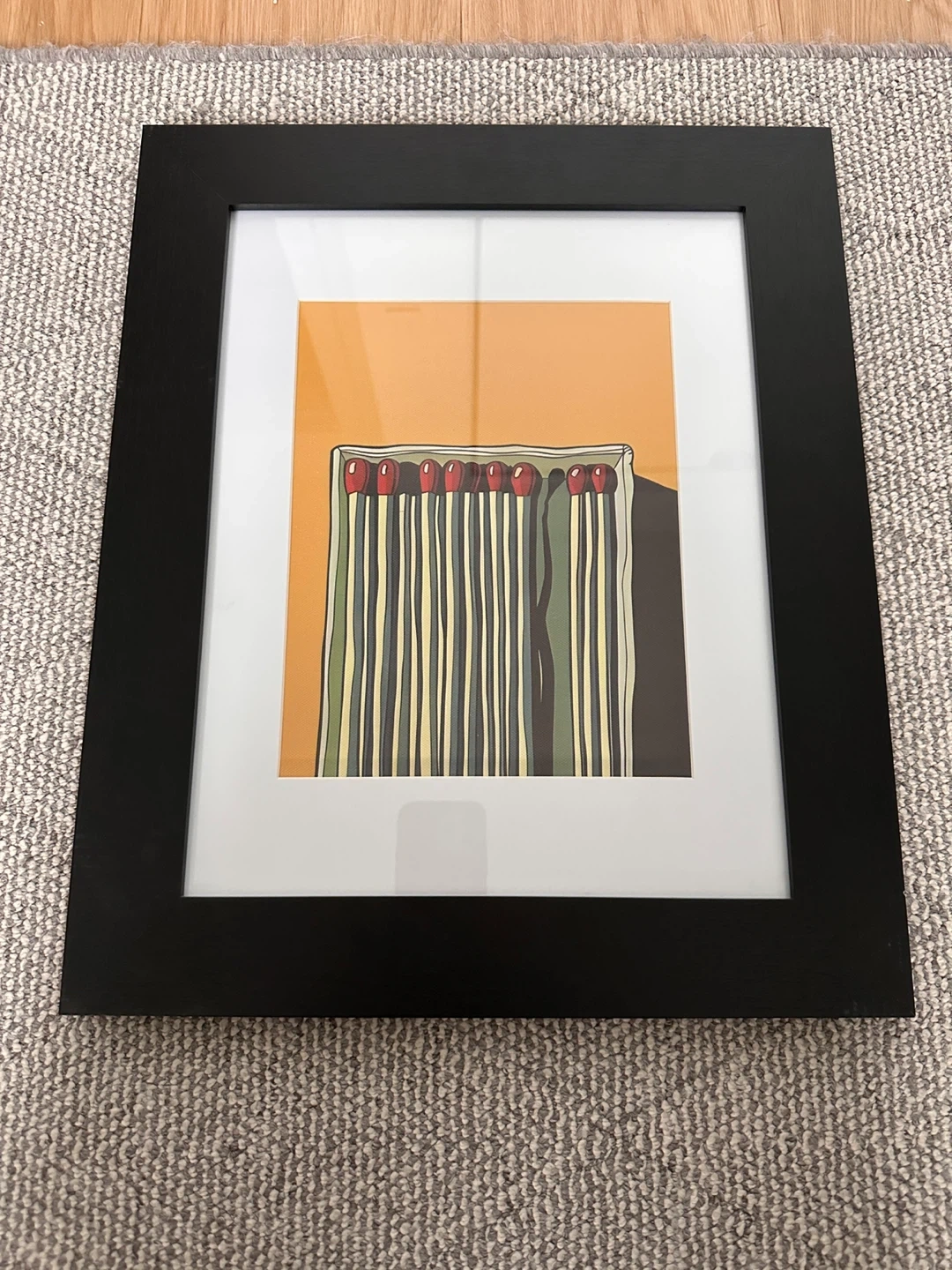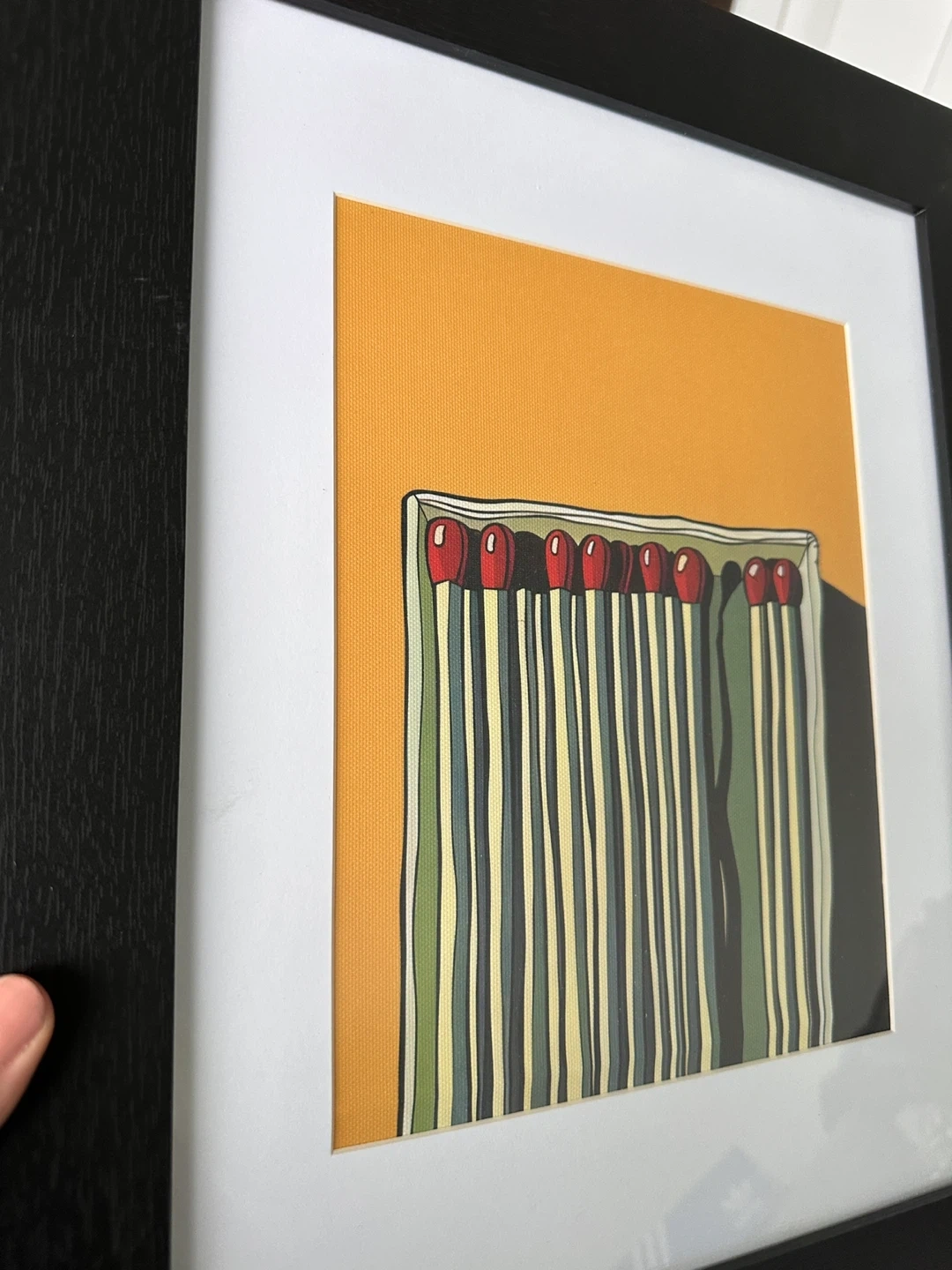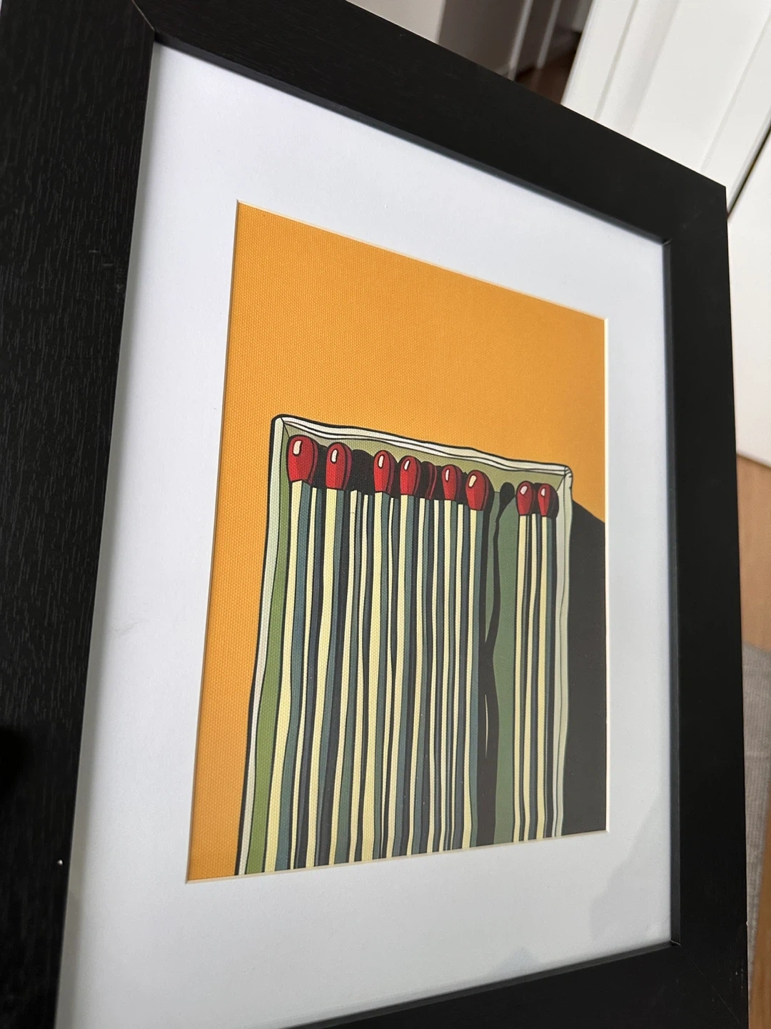 This framed print features a colourful illustration of a box of matches. It's matted and ready to hang. A neat addition to any room!