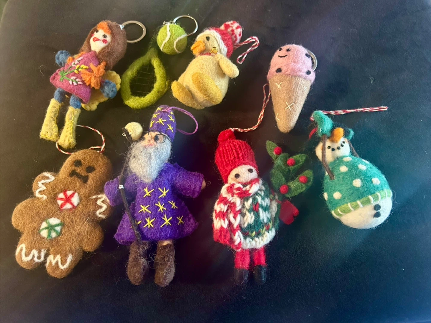 Selling a collection of adorable handmade felt Christmas ornaments! These include a gingerbread man, wizard, snowman, and more. Perfect for adding a touch of whimsy to your holiday decor