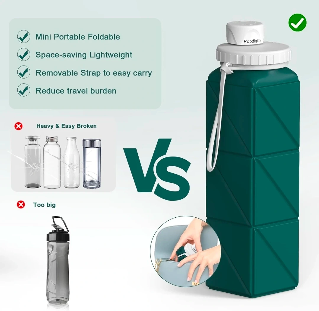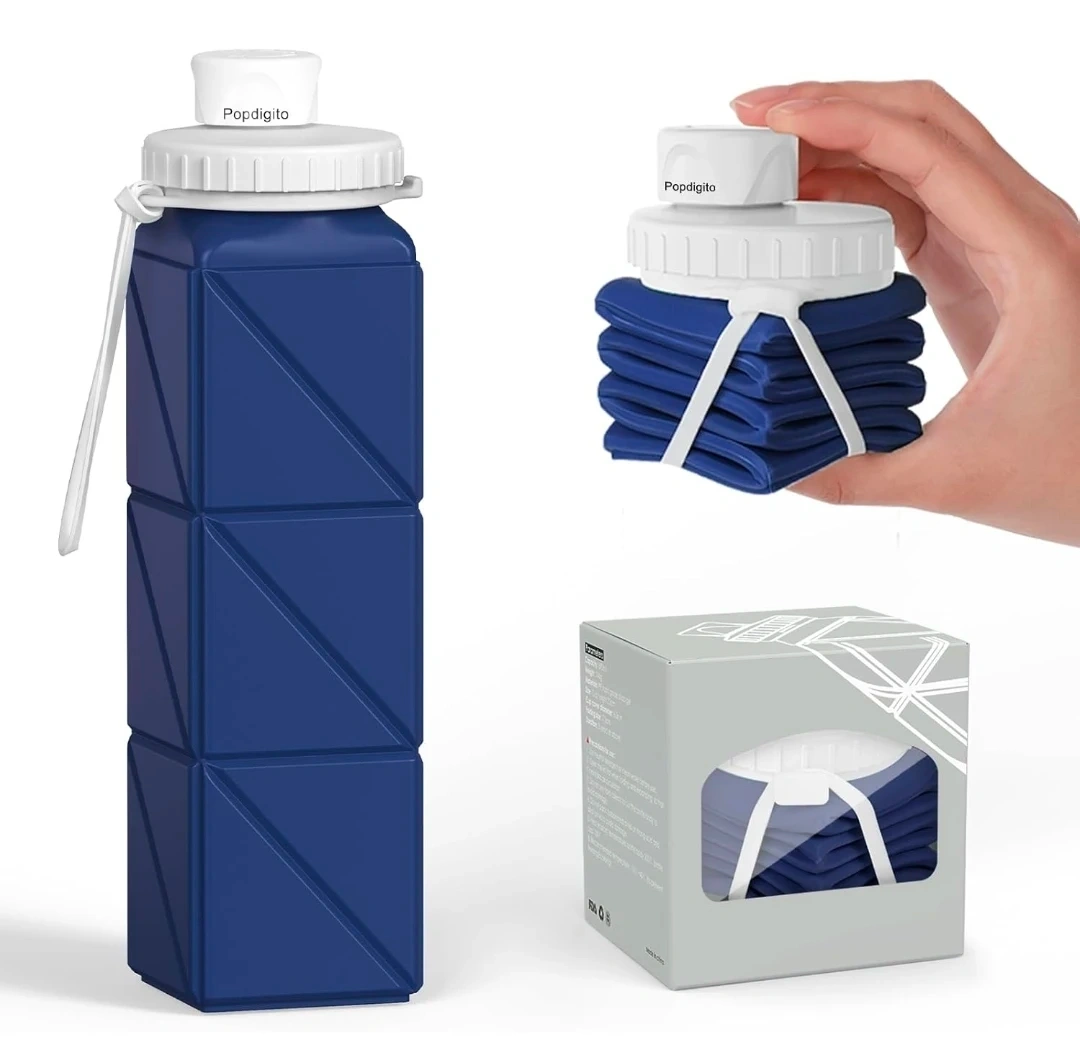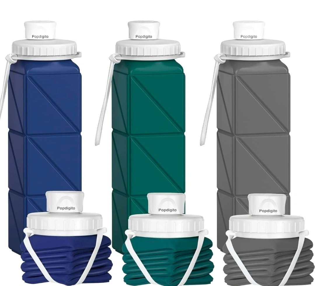 This Popdigito water bottle is made of healthy, food-grade silicone. It's BPA-free and leak-proof, perfect for on-the-go hydration. Its lightweight, foldable design makes it easy to save space and carry anywhere, ideal for travel, sports, or daily use!