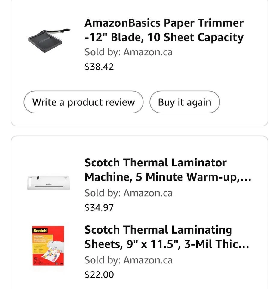 Buy & SellLaminating Machine, Sheets, and Cutting BoardLaminating Machine, Sheets, and Cutting Board$50Imperfect condition, still in its box. No longer need it. Pick up is at Mary Hill.WHERE TO MEETCheck LocationView MapSELLERSaraRanch Park150 reviews0 chats·0 favorites·1 viewsSEND CHAT TO SELLERHi Sara! I’m interested in your listing.Hi Sara! I’m interested in your listing.Get the Karrot app to chatSign In to chat