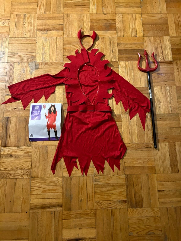 10Get ready for Halloween with this devil costume! It includes the dress, headband with horns, and a pitchfork. Perfect for a spooky night out!