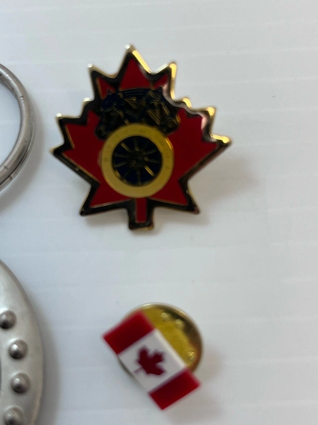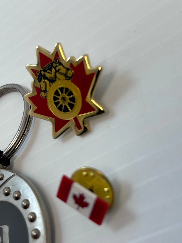 This collection includes a variety of Canadian-themed pins and a keychain, perfect for collectors or as souvenirs. The set features a maple leaf chuck wagon pin, a Canadian flag pin, and a keychain with a Canadian flag design. All in like new condition. Pick up only! Key features: Maple Leaf Chuck Wagon Pin, Canadian Flag Pin, Canada Keychain. These pins and keychain are just waiting for a new home.