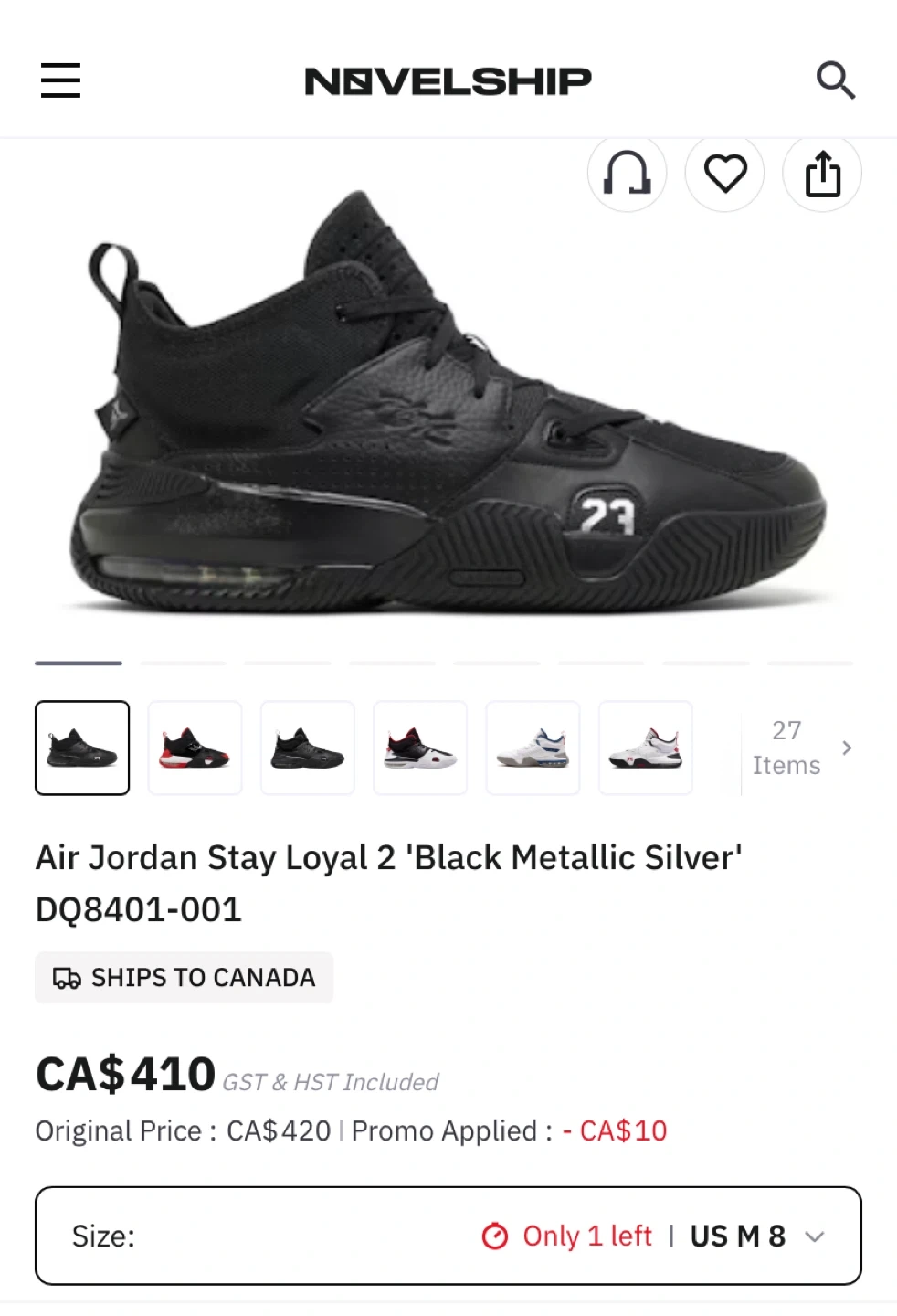 Air Jordan Stay Loyal 2 'Black Metallic Silver men size 8. Retails for over $400 (see picture). Selling for $80 CAD firm. Like new condition. Does not come with original shoe box but I can provide a box. Smoke Free Home.