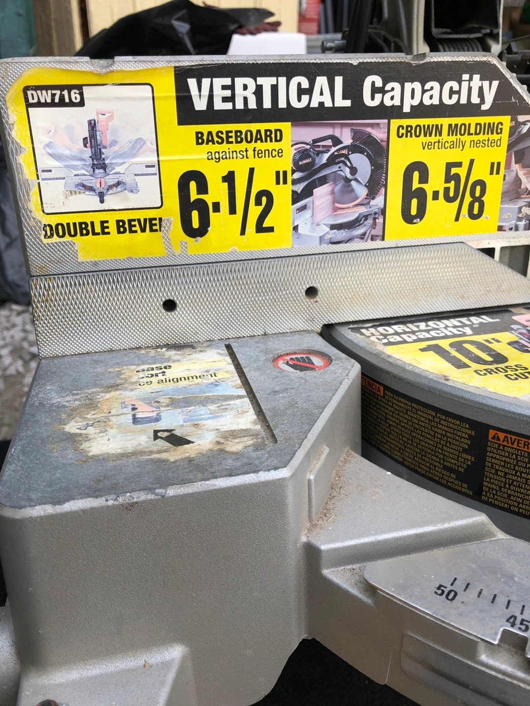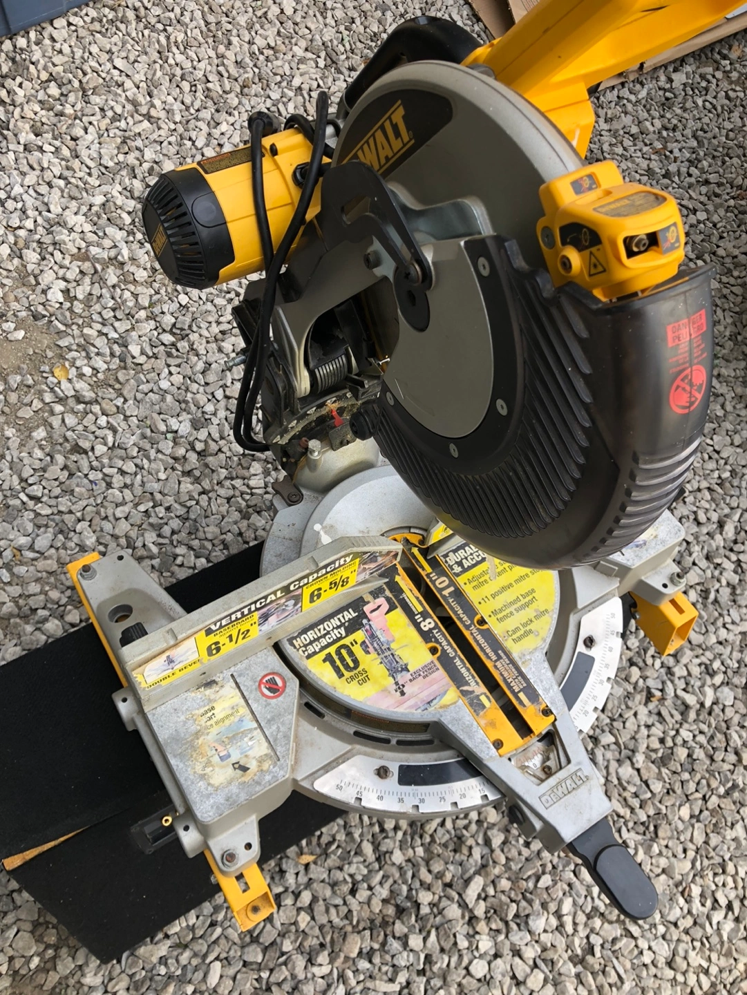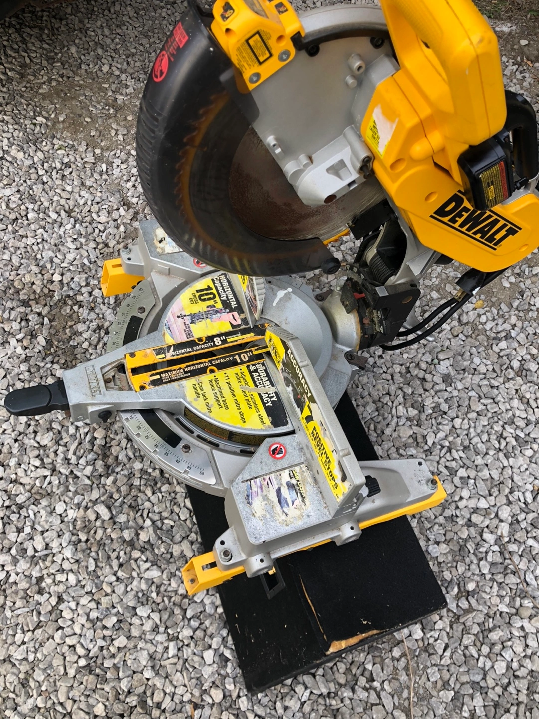 110DeWalt 10-inch compound miter saw. Includes the saw, blade, and stand. Double bevel. Works well, but has minor signs of use.