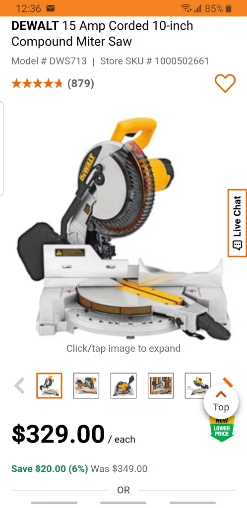 26Selling a brand new DeWalt 15 Amp Corded 10-inch Compound Miter Saw! It's still in the box (never opened) and ready for your projects. $300 cash, pickup only! - Model #: DWS713 - Store SKU # 1000502661 - Originally bought for $349 plus tax
