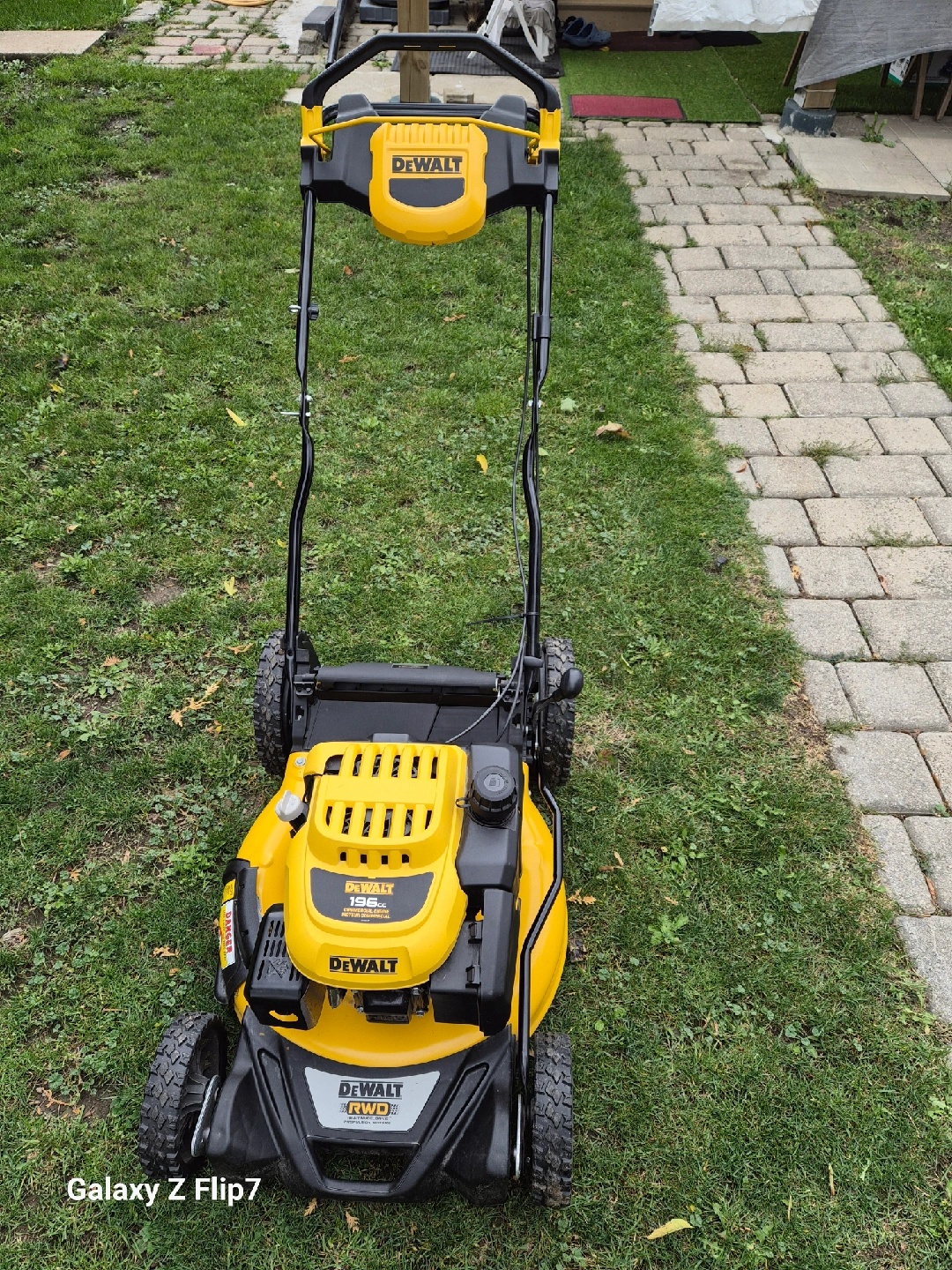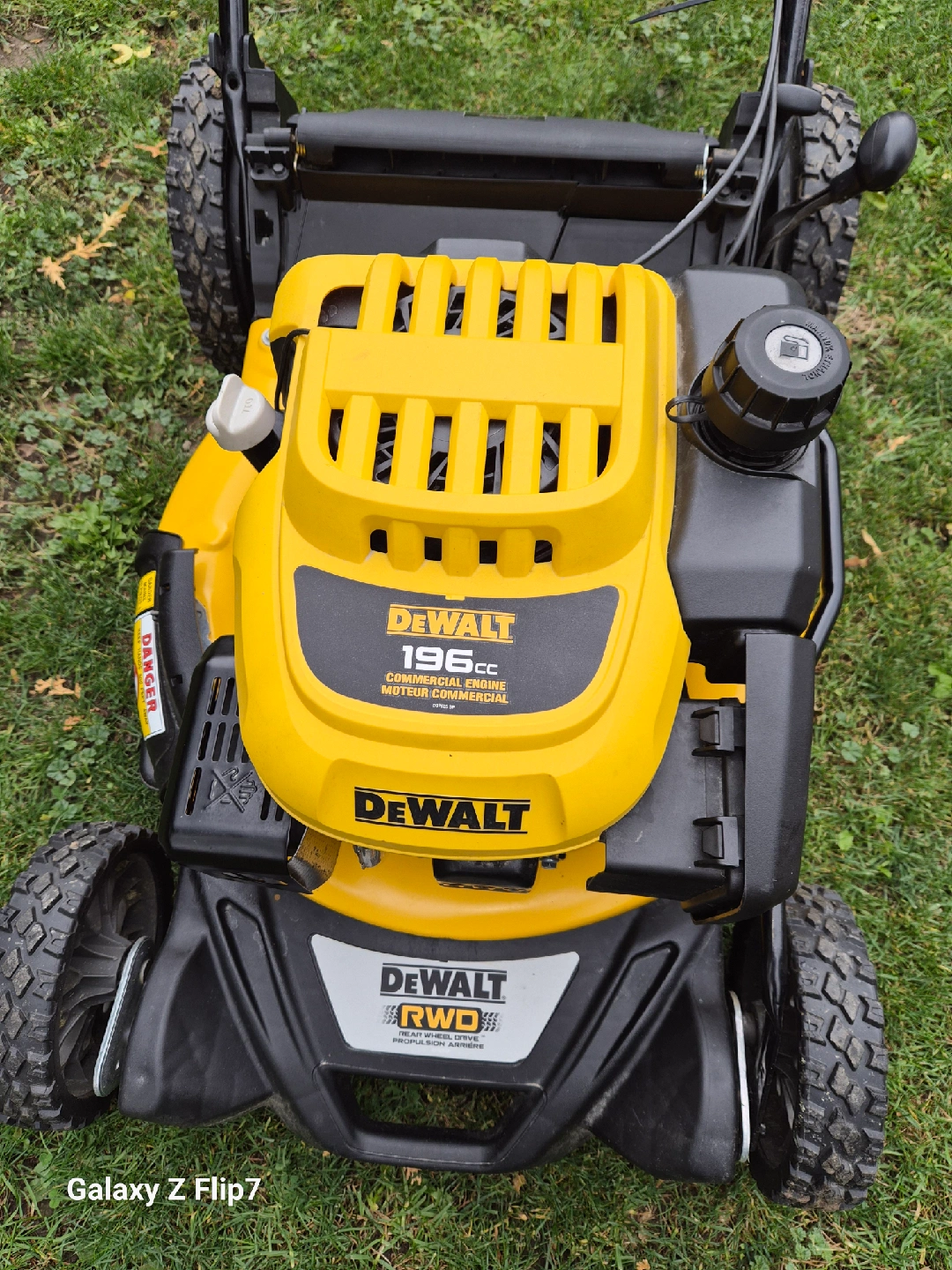 Selling a DeWalt gas-powered lawn mower. It features a 196cc commercial engine and rear-wheel drive (RWD). It's ready to tackle your lawn this season!
