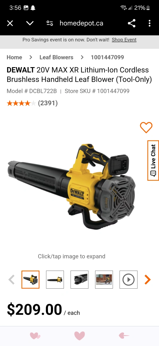 DEWALT 20V MAX XR cordless leaf blower. Brushless motor, tool-only. can test it before buying asking $150