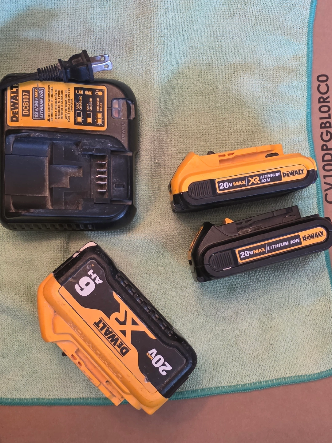 Selling a set of DeWalt 20V MAX XR lithium ion batteries and a charger. Includes one 6AH battery and two smaller batteries. Ready to power your tools!