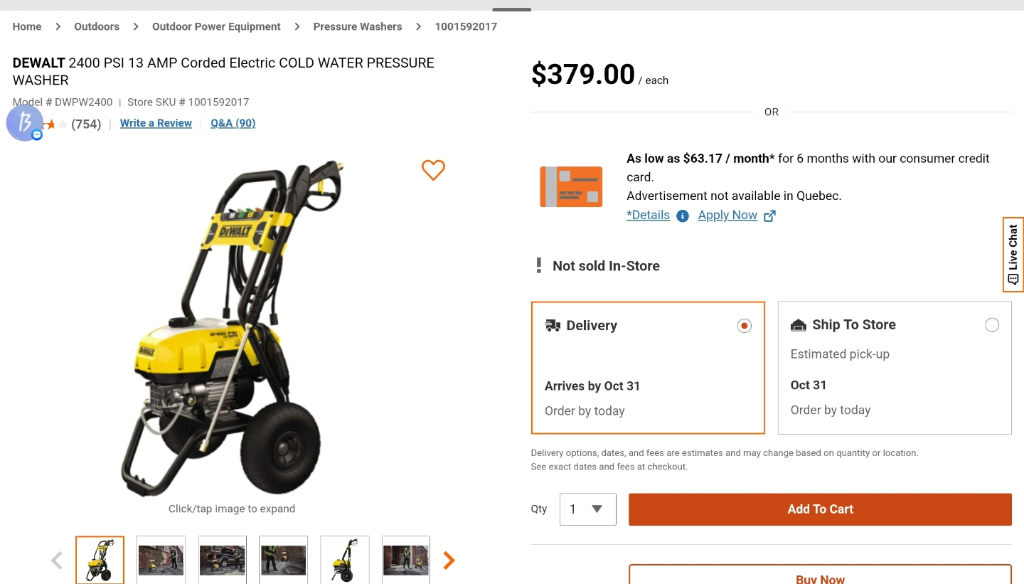 65Selling a DeWalt 2400 PSI 13 AMP Corded Electric Cold Water Pressure Washer. It's in great shape and ready to tackle your outdoor cleaning tasks! Retails for $379. But am selling it for $290.