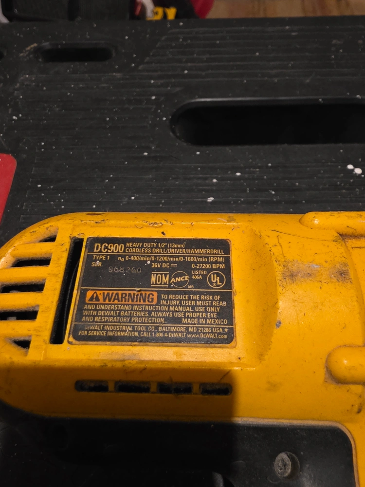 59Selling a DeWalt DC900 heavy duty 1/2" (13mm) cordless drill/driver/hammerdrill. It's a 36V model, perfect for various tasks! Please see photos for condition