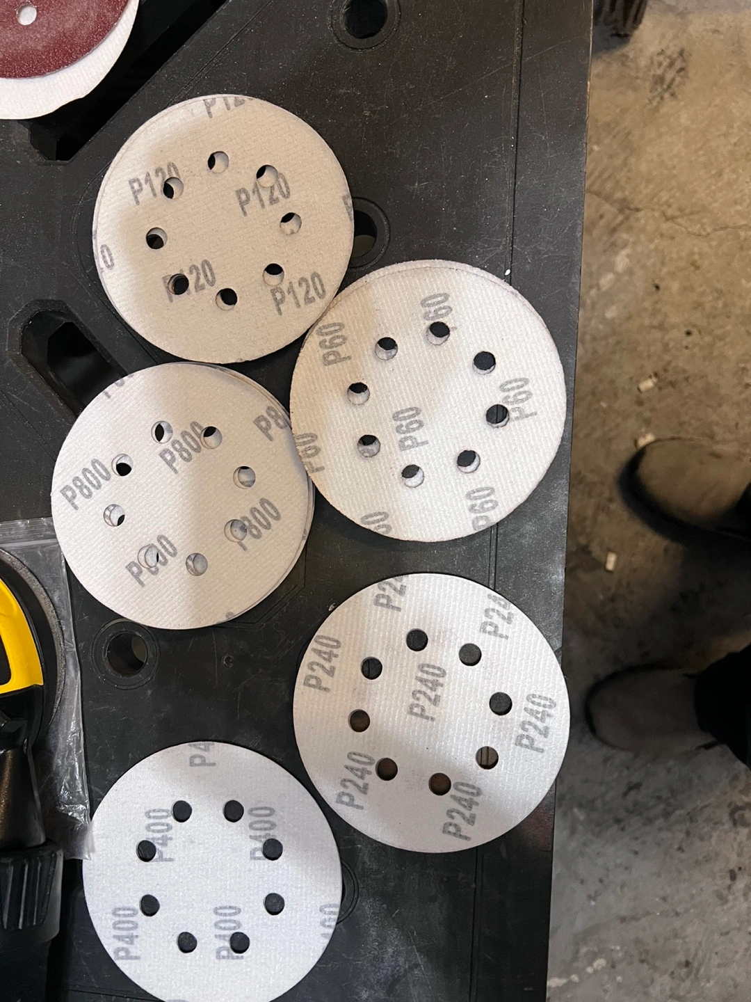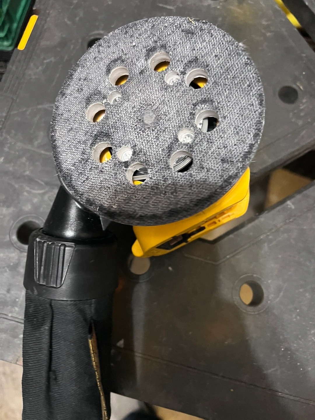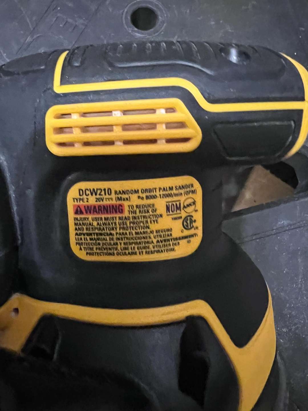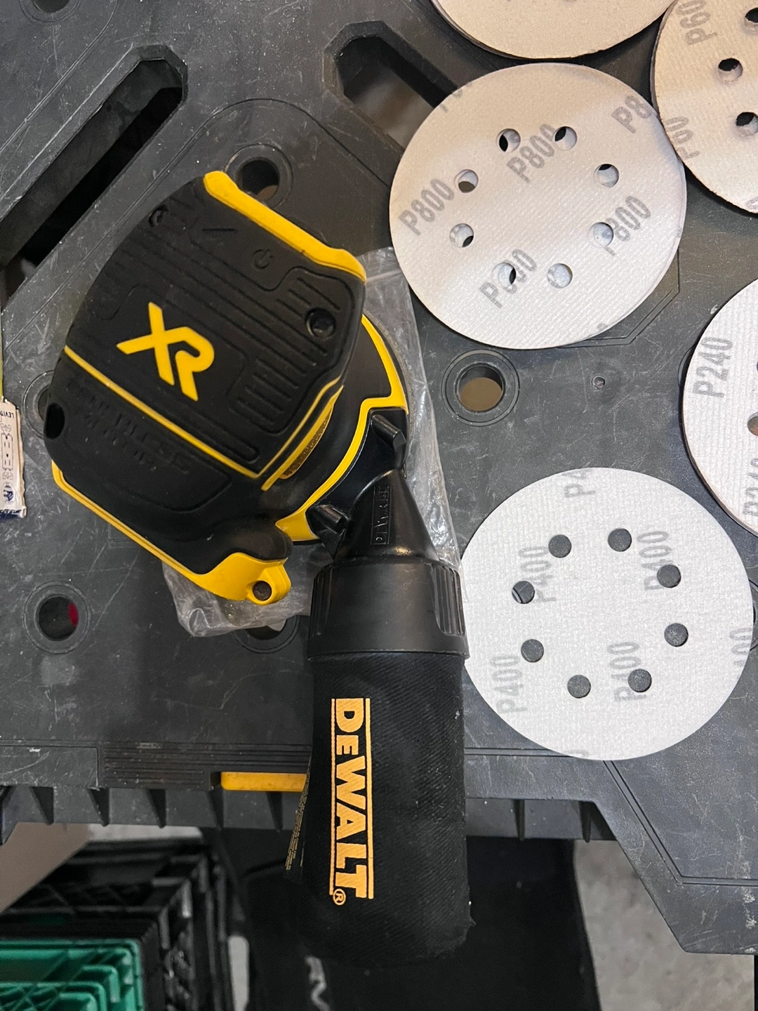 Cordless sander, comes with dust collection hose and 16 sanding pads.