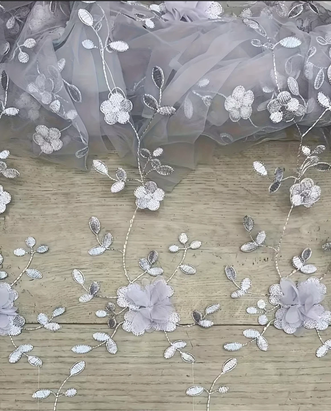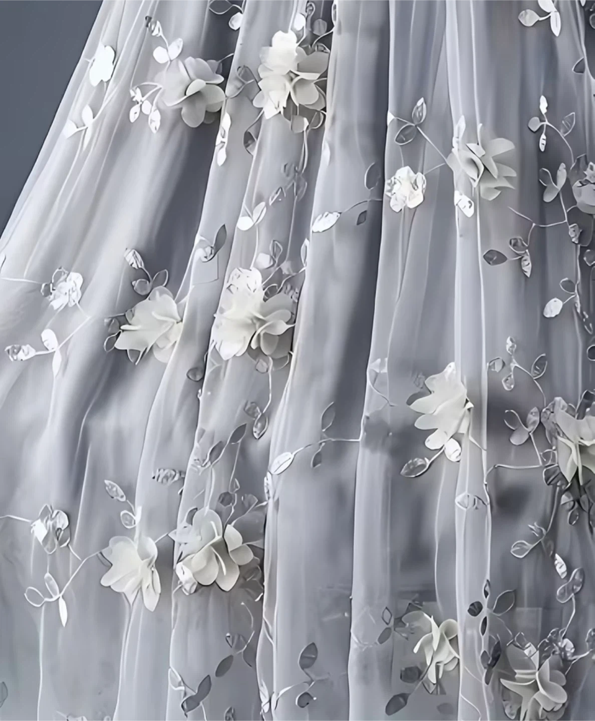 Grey Tulle Skirt with 3D Flowers