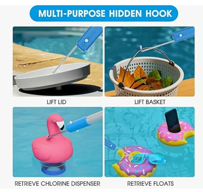 2-in-1 Pool Brush with Hidden Hook Retriever