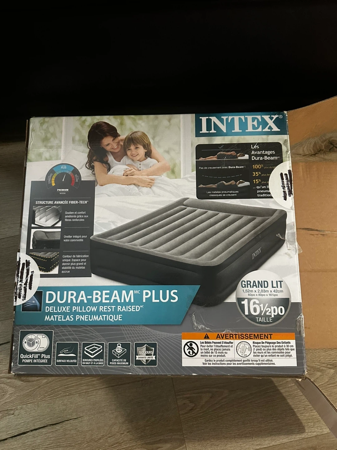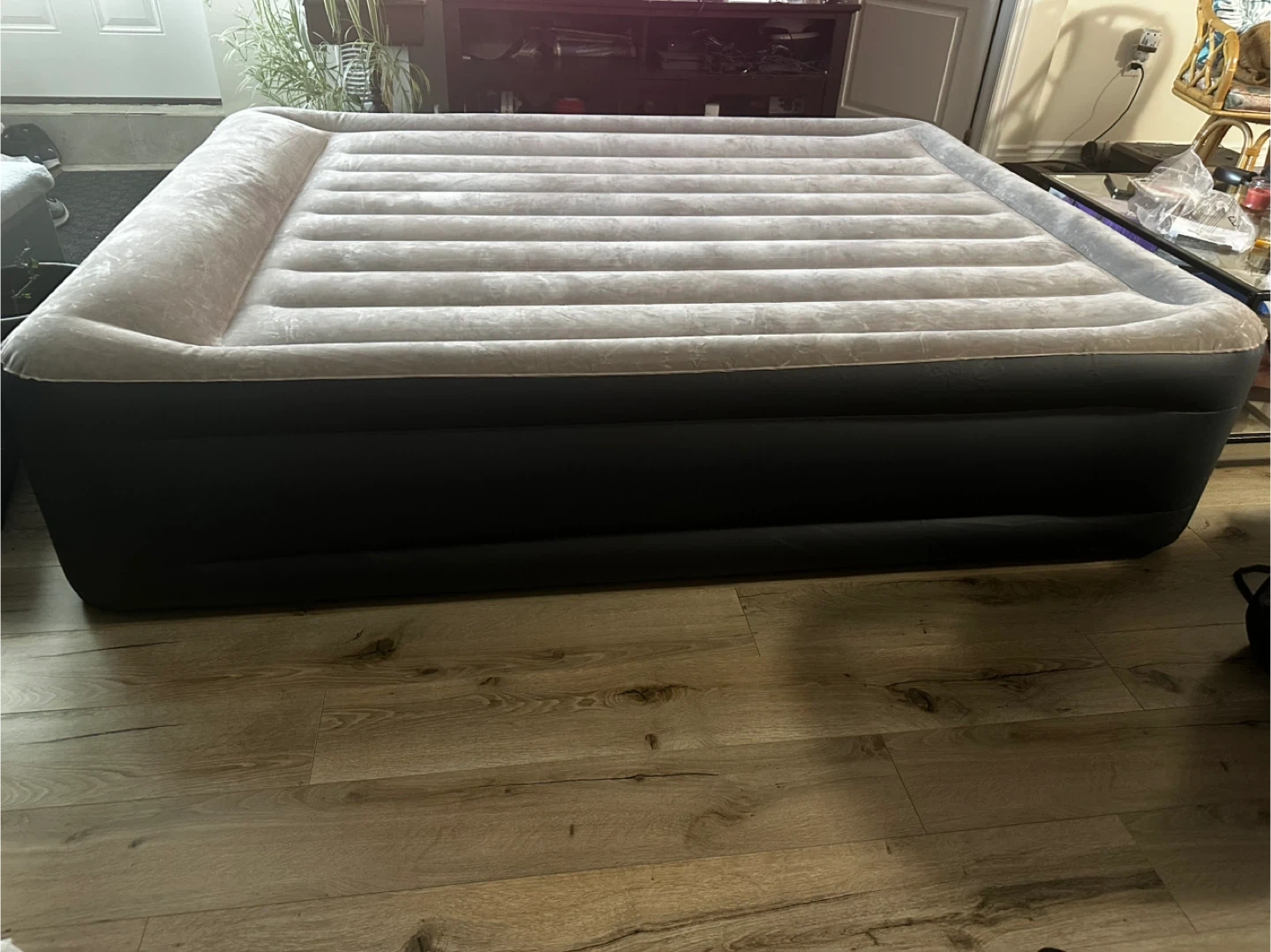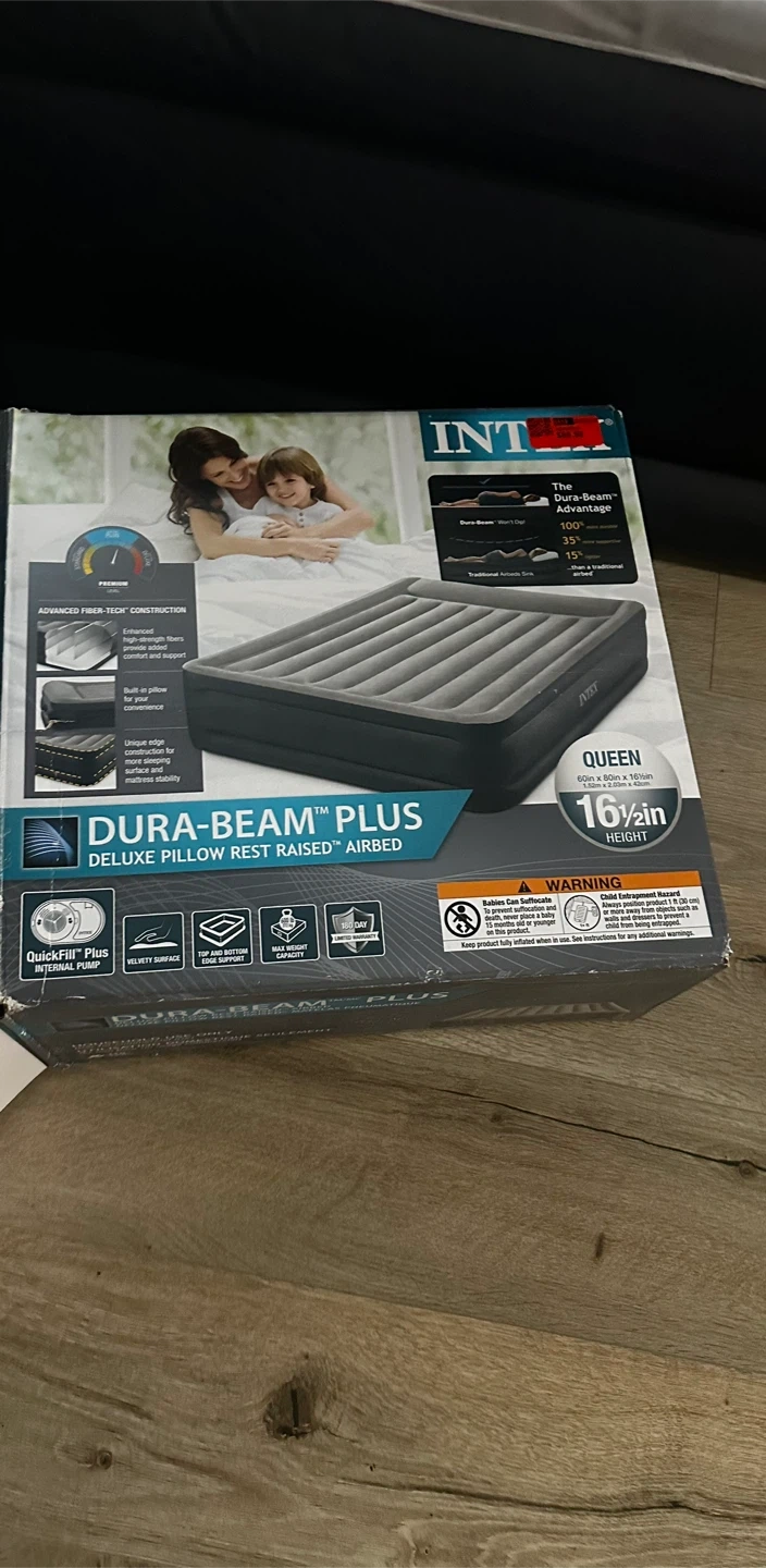 Selling an Intex Dura-Beam Plus Deluxe Pillow Raised air mattress in queen size! This air mattress features advanced fiber-tech construction for added support and comfort. It's designed with a built-in pillow for extra convenience. Perfect for guests or camping!