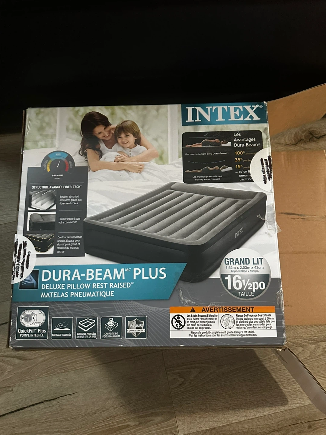Selling an Intex Dura-Beam Plus Deluxe Pillow Raised air mattress in queen size! This air mattress features advanced fiber-tech construction for added support and comfort. It's designed with a built-in pillow for extra convenience. Perfect for guests or camping!