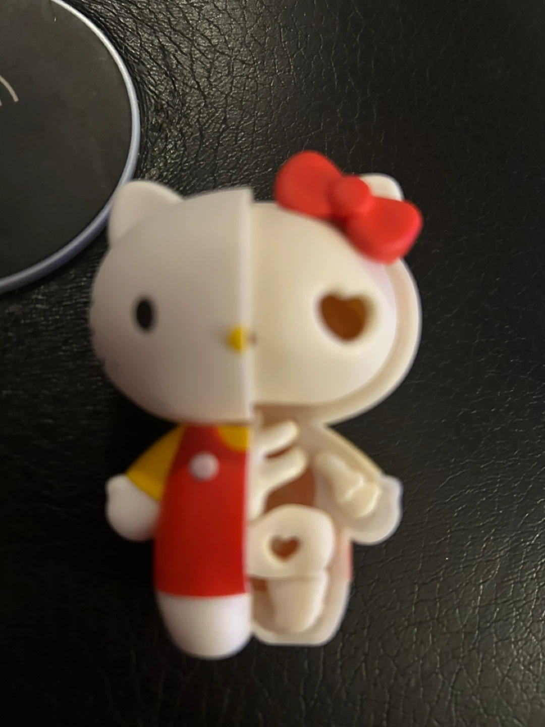 This is a unique Hello Kitty figure showing the internal anatomy. It's a fun and educational piece, great for collectors or those interested in anatomical models. Comes with detachable parts for assembly.