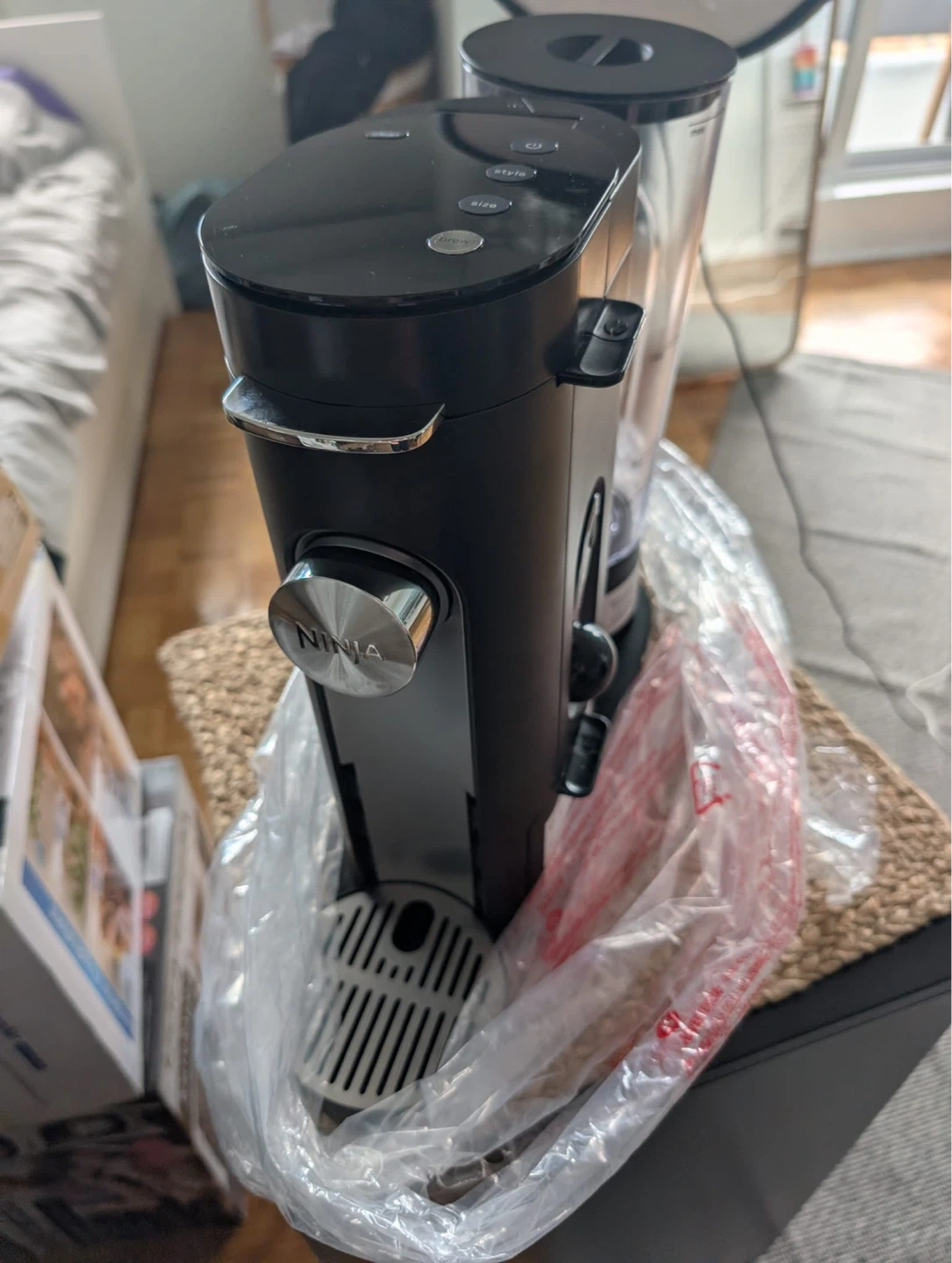 Selling a brand new, unused Ninja Single-Serve Pods & Grounds Specialty Coffee Maker (Model PB051C). The machine is in pristine condition with all its original protective plastics and packaging still intact.