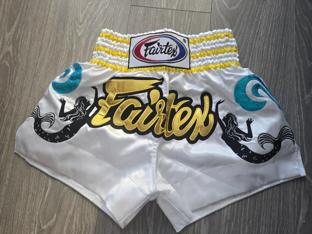 **Fairtex Muay Thai Shorts - White/Gold - Size S - Brand New**