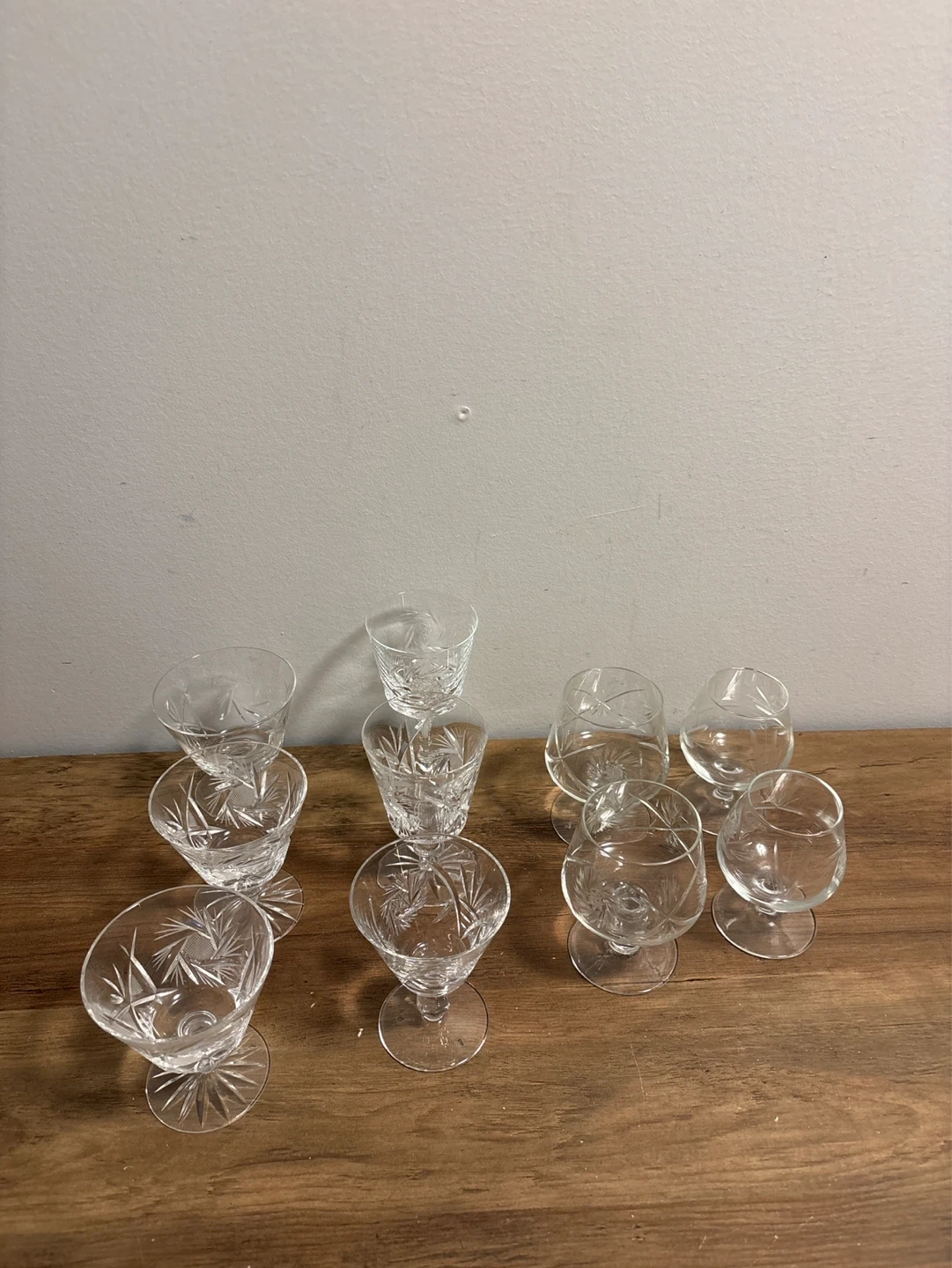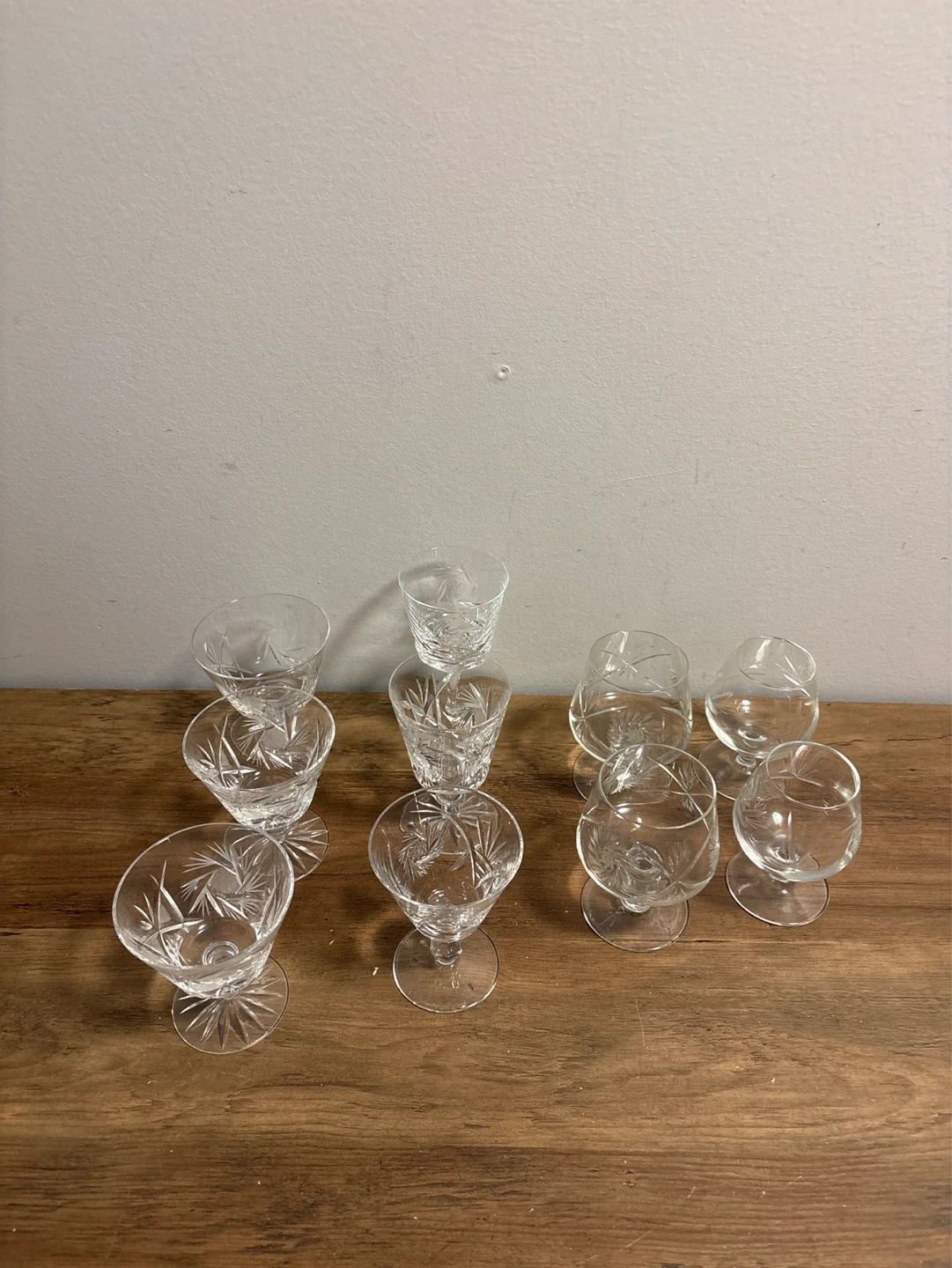 Set of 10 Crystal Pinwheel Etched Shot Glasses