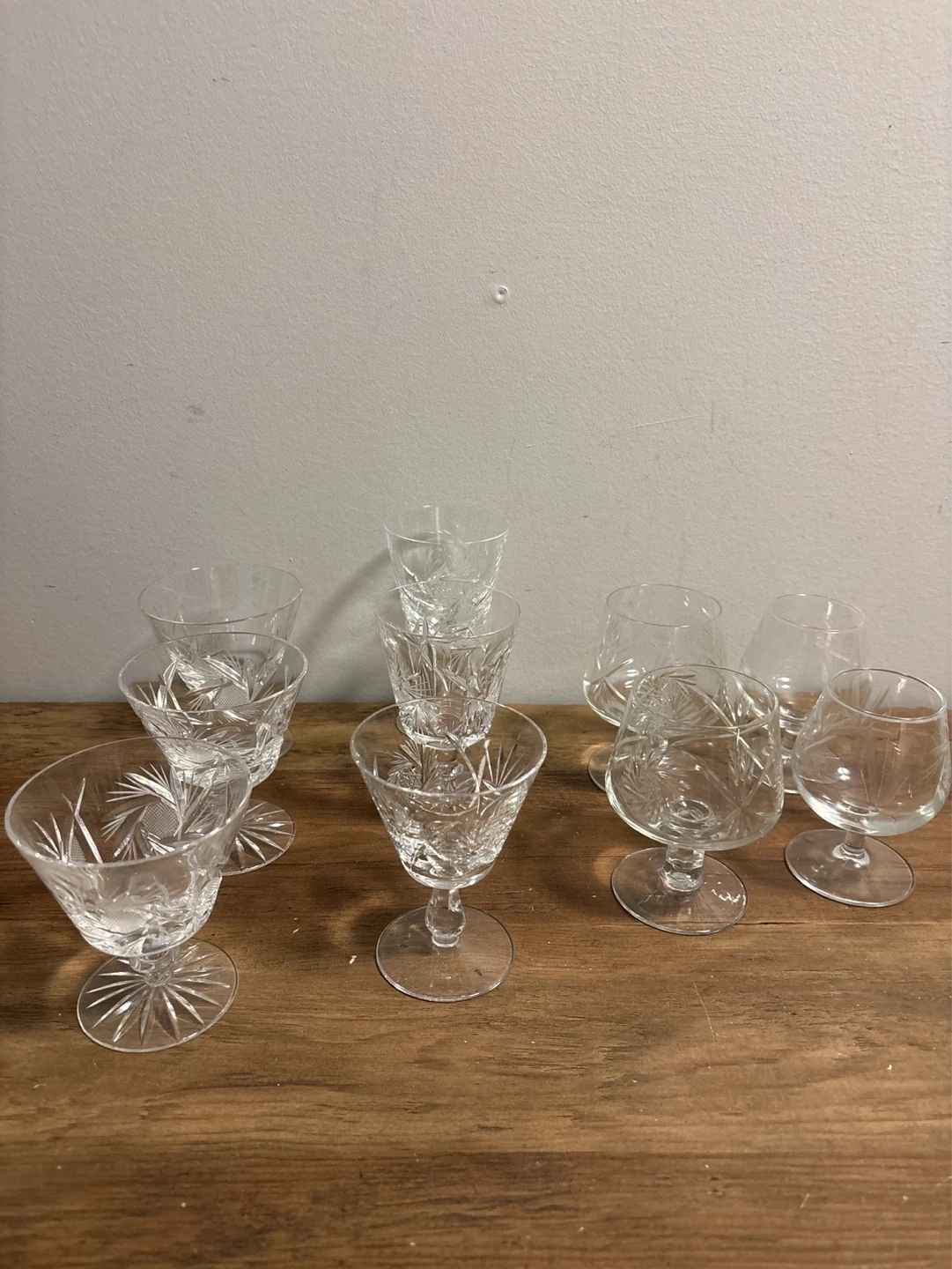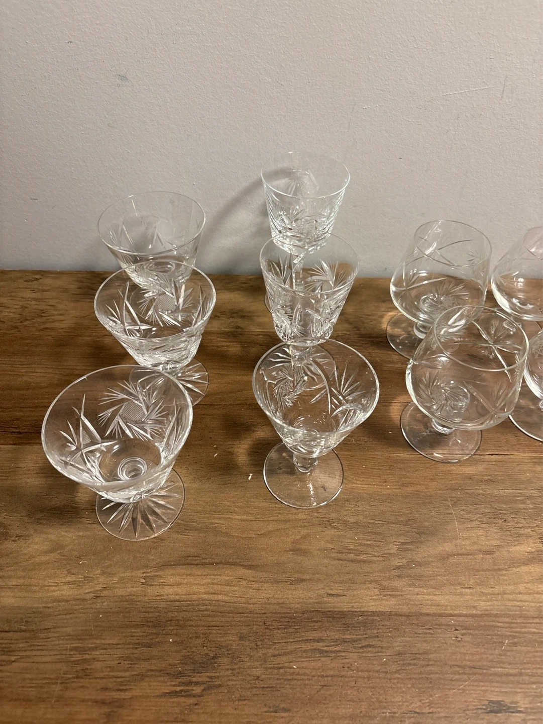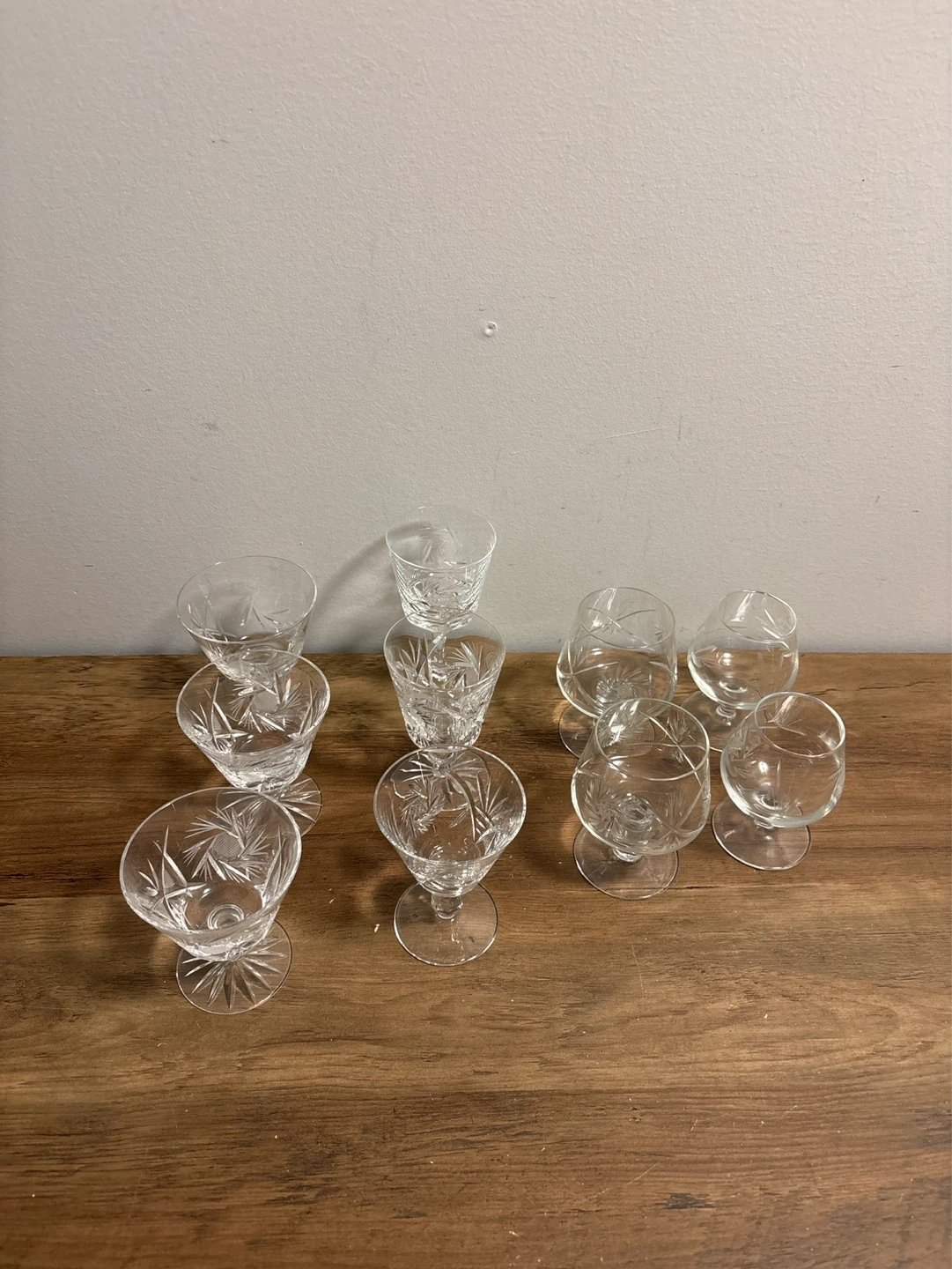 Set of 10 Crystal Pinwheel Etched Shot Glasses