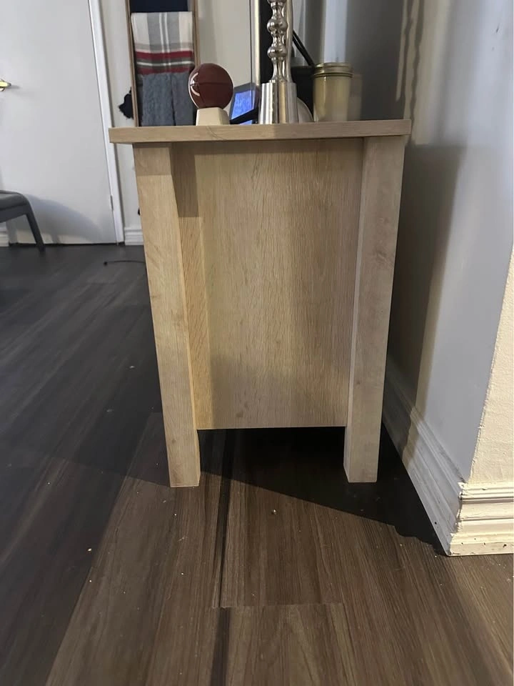 Solid wood TV stand with storage. Perfect for living rooms or bedrooms. Dimensions: 48" W x 16" D x 20" H. Minor wear and tear, but overall in good condition.