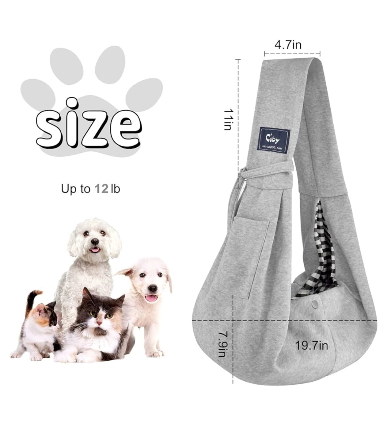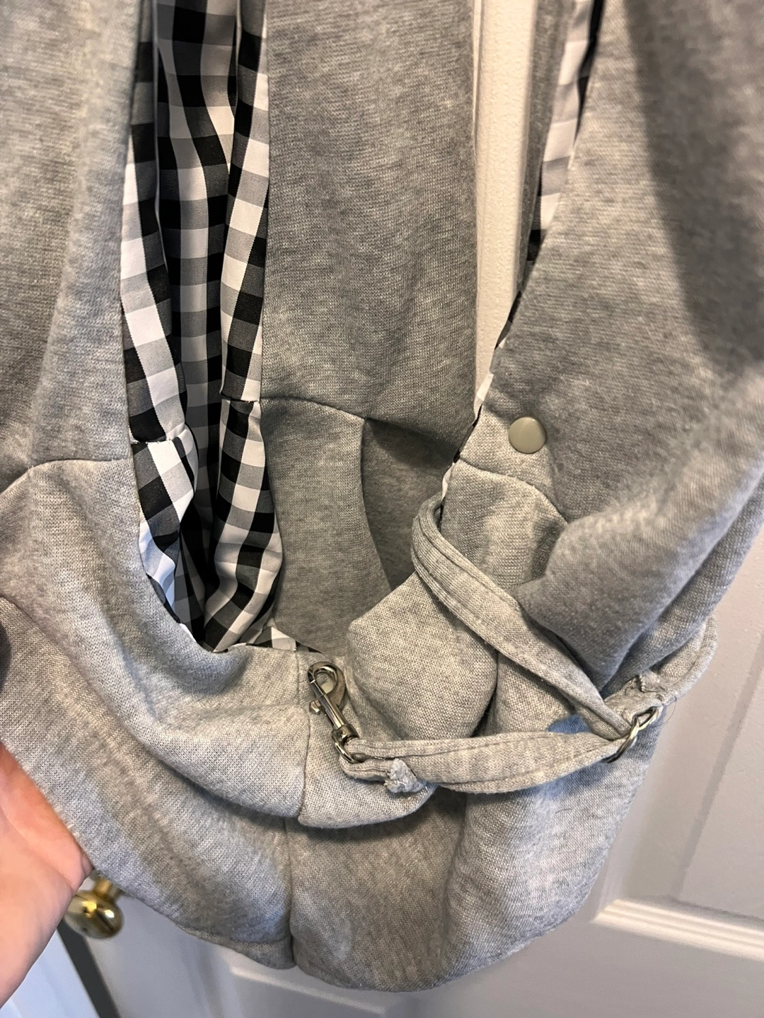 Athletic grey and black and white gingham plaid lining dog pet sling.