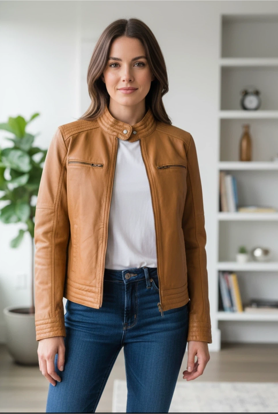 Superior New York Women's Genuine Leather Jacket - Tan, Size L
