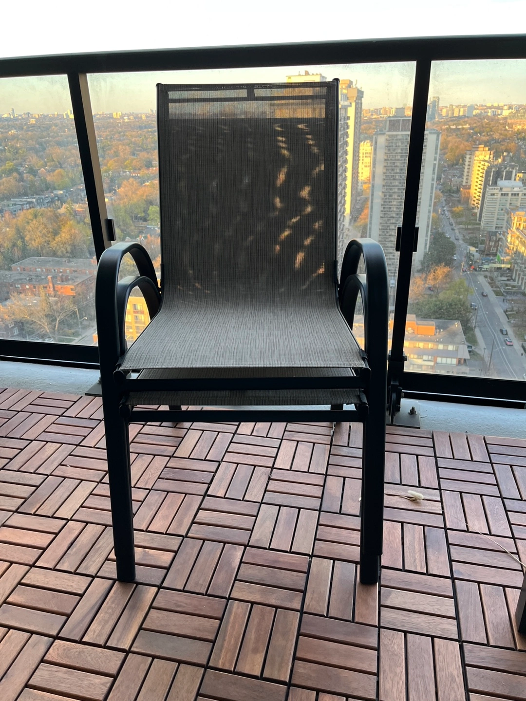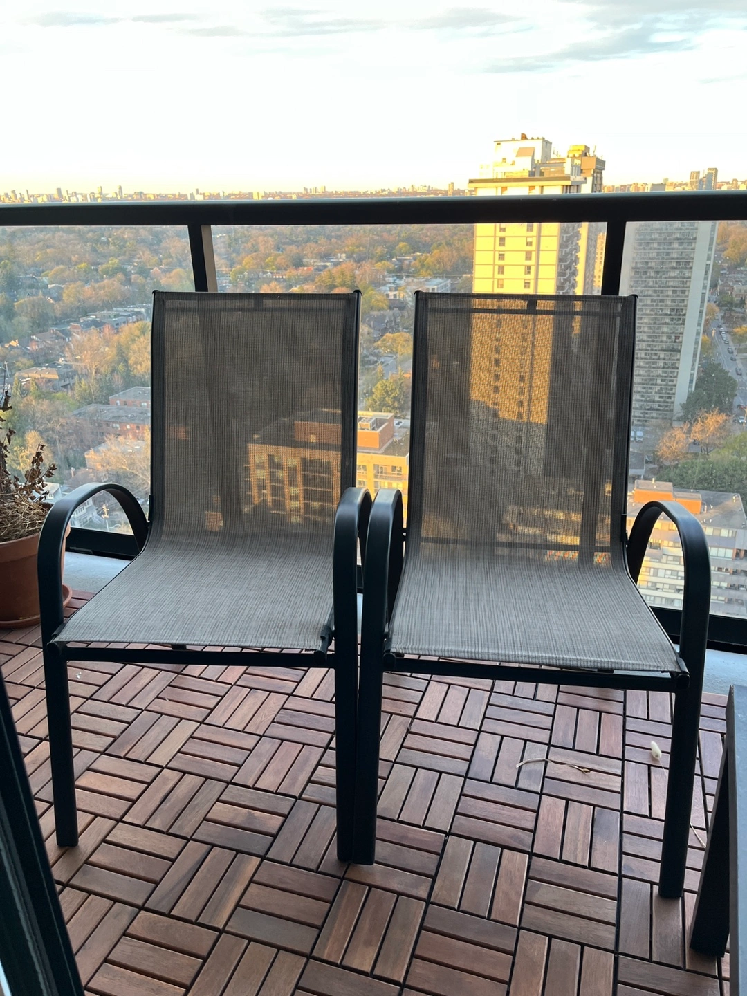Selling a pair of patio chairs perfect for any balcony, backyard, or outdoor space.