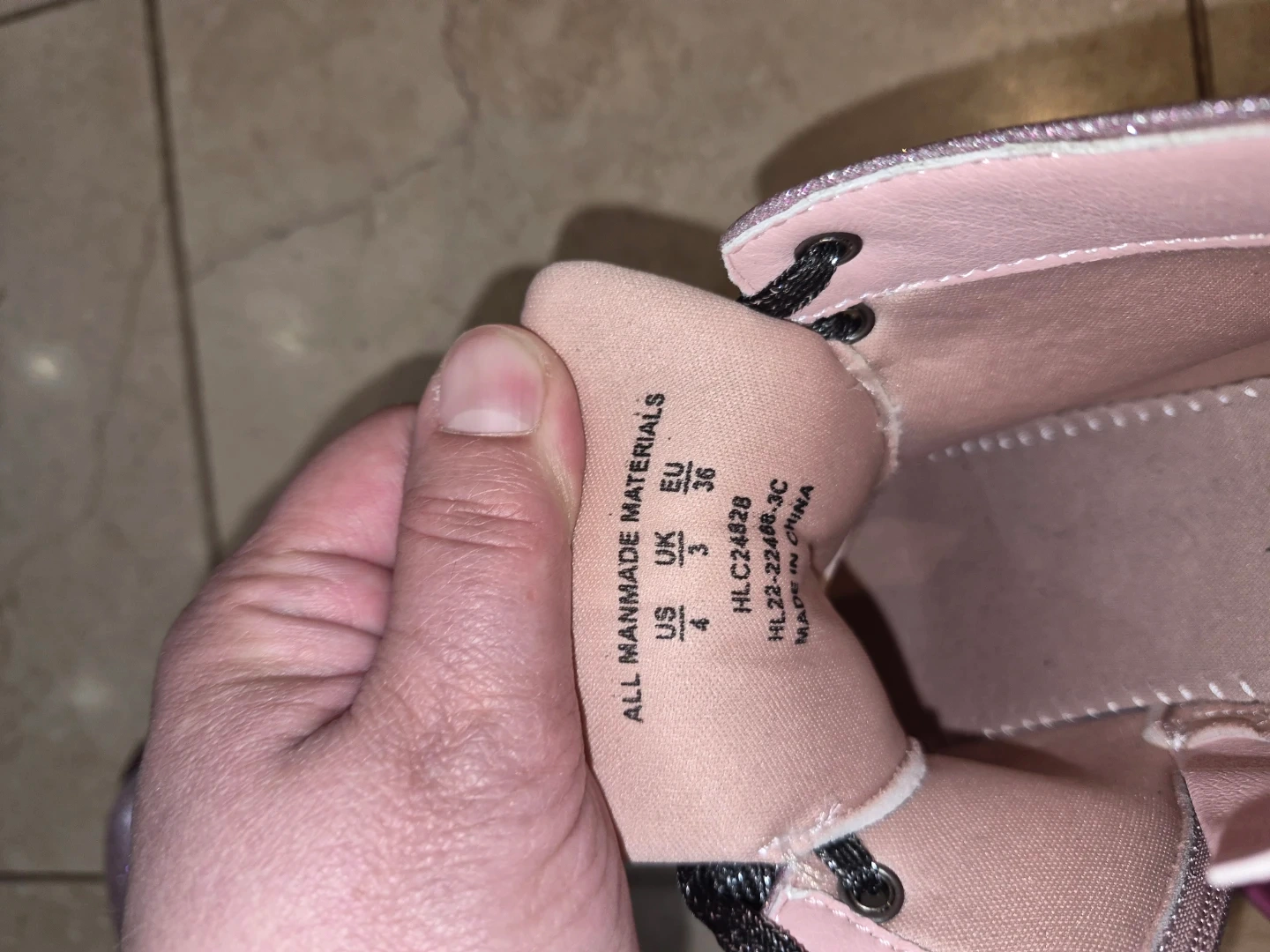 Girls Pink Glitter Combat Boots Size 4 US