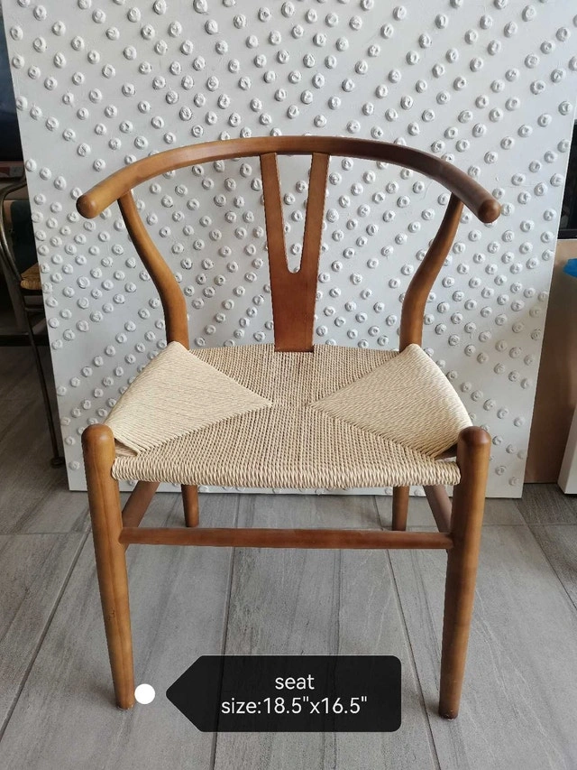 Brand new Wishbone chair, also known as the Y chair or CH24 chair, featuring a woven seat and a curved backrest for comfortable seating. This iconic chair will add a touch of elegance to any dining space. Specification: