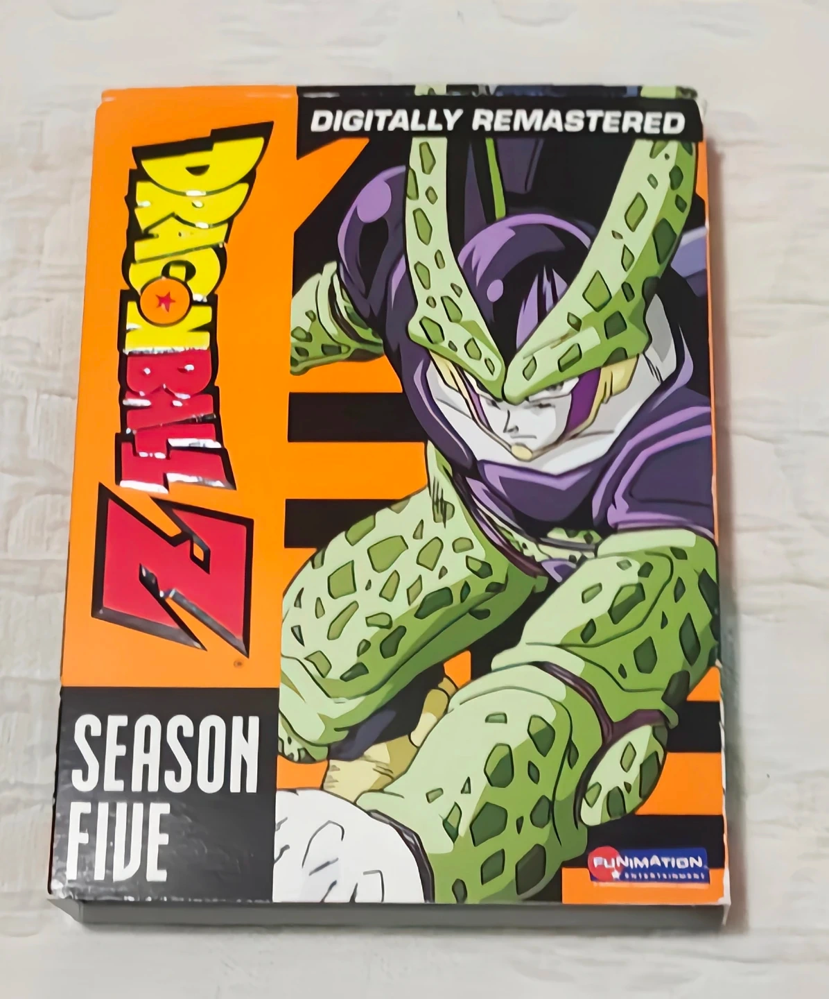 Digitally remastered Dragon Ball Z Season Five DVD box set. Includes the Imperfect & Perfect Cell Sagas, covering episodes 148-185. Discs come in original packaging.