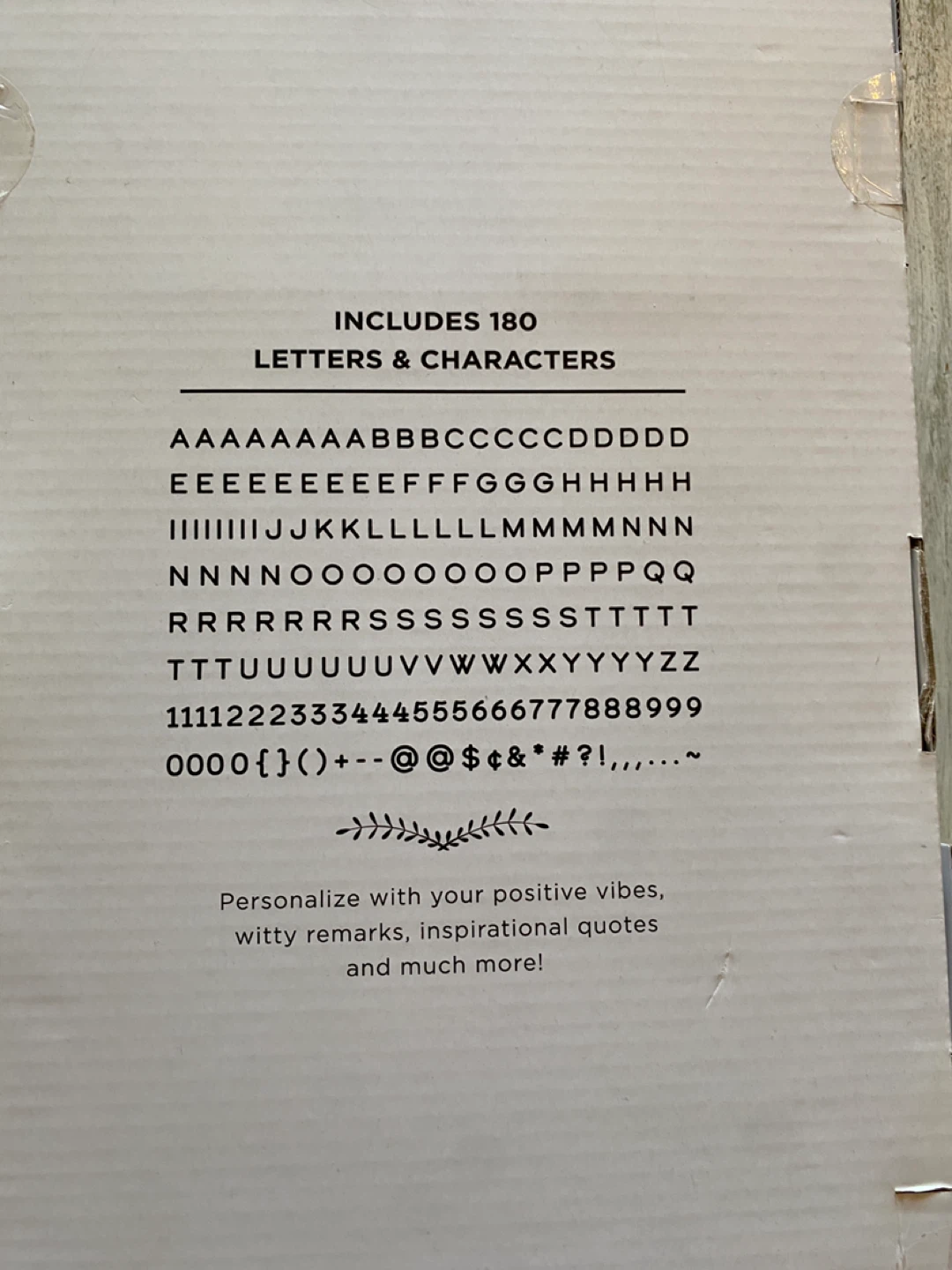 Measures 8 x 20 in (20.3 x 50.8 cm) and comes with 180 letters and characters.