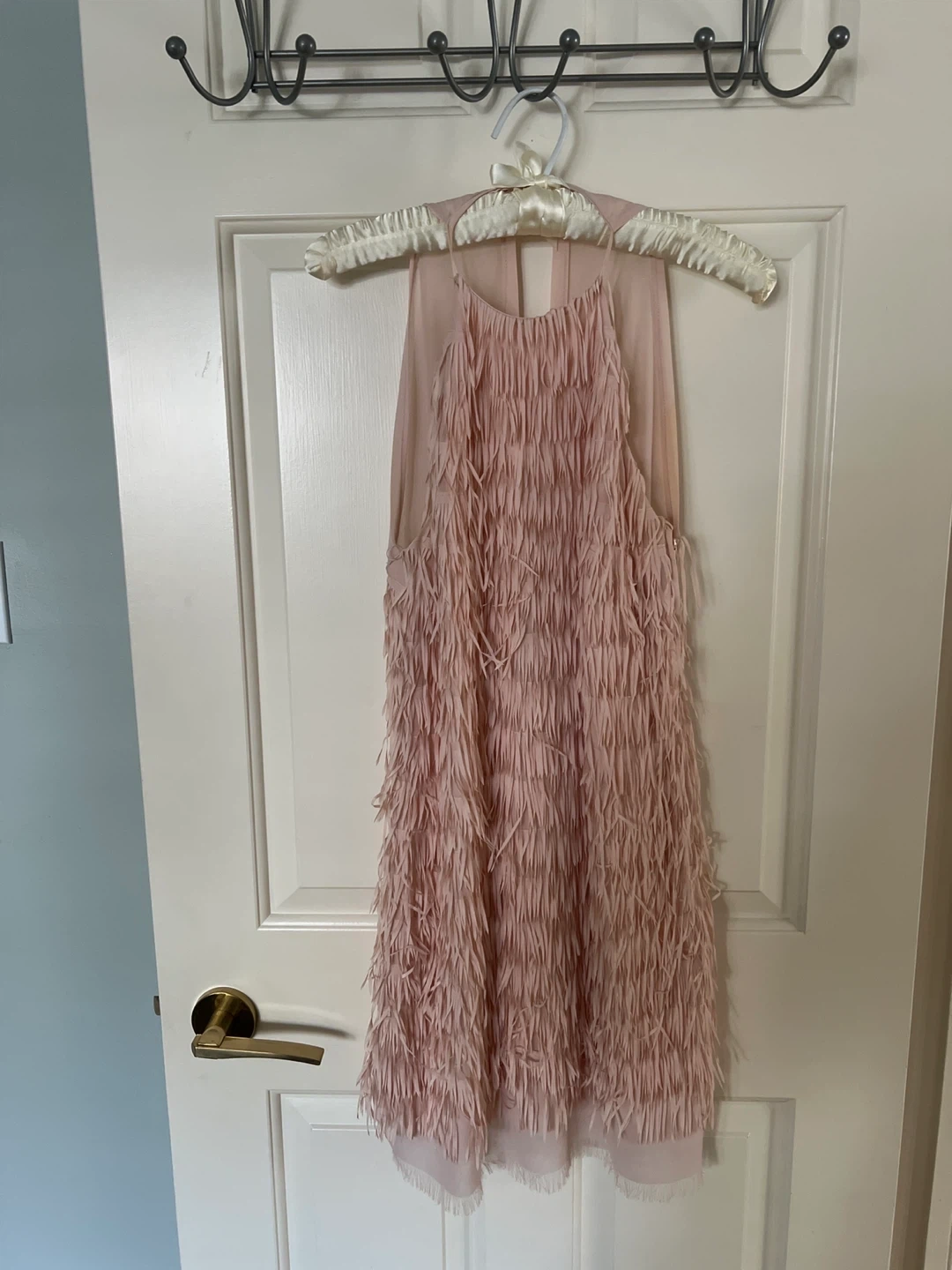 Selling a super cute H&M dress! It's a light pink colour with a fun fringe design. The size is 6. Perfect for a night out or a special occasion! 2 parts was add on it cz was to short for me