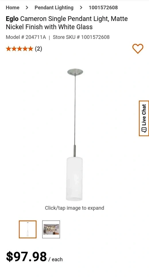 This Eglos Cameron pendant light is perfect for indoor use and brings a contemporary feel to any space. Features a Matte Nickel Finish with white Glass.