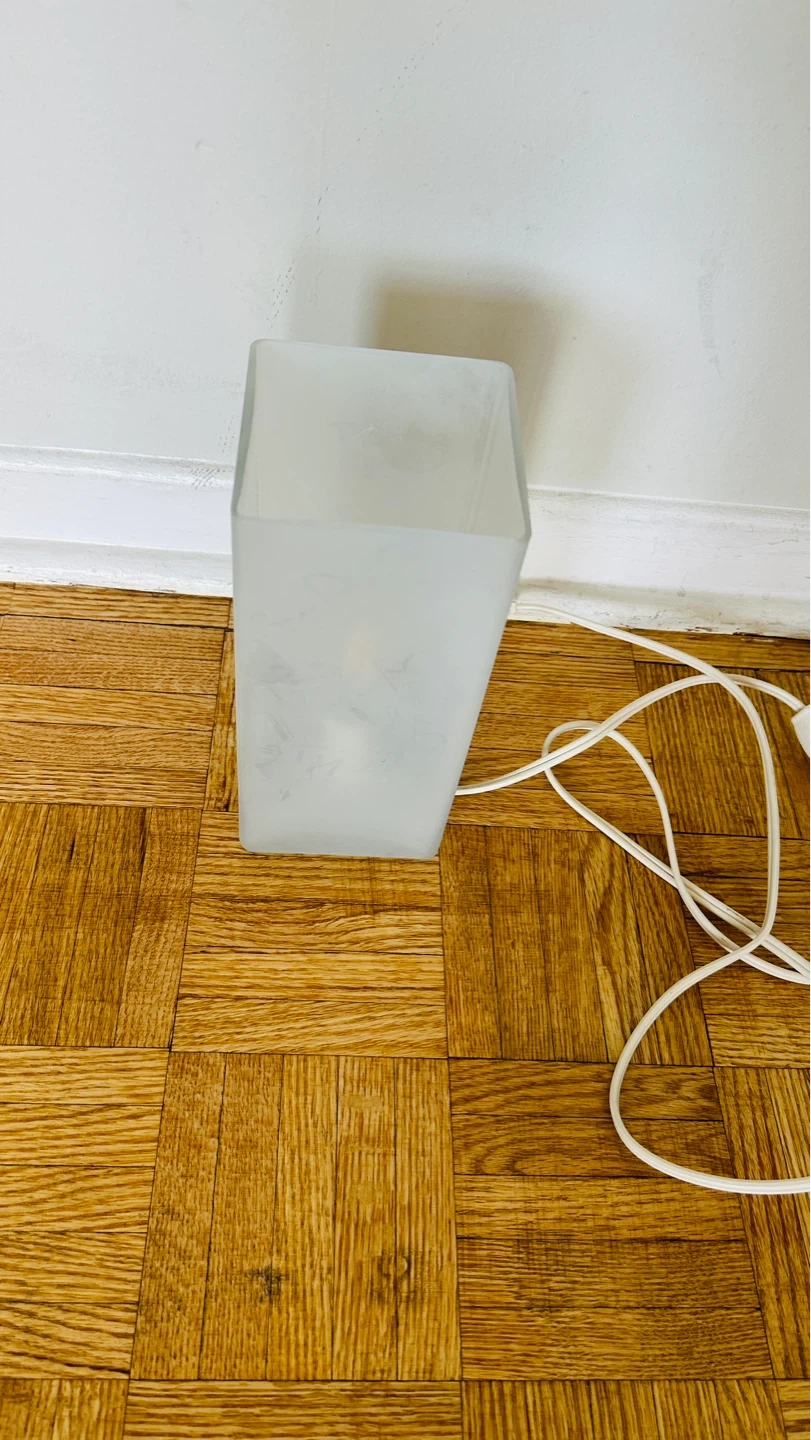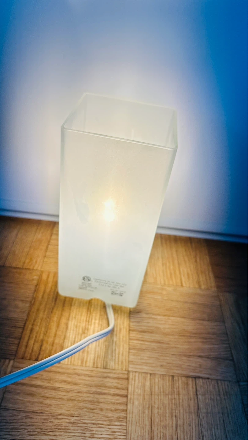 This IKEA Frost lantern lamp provides a soft, ambient glow. It's made of frosted glass and includes a power cord with an on/off switch. It's great for creating a cozy atmosphere in any room.