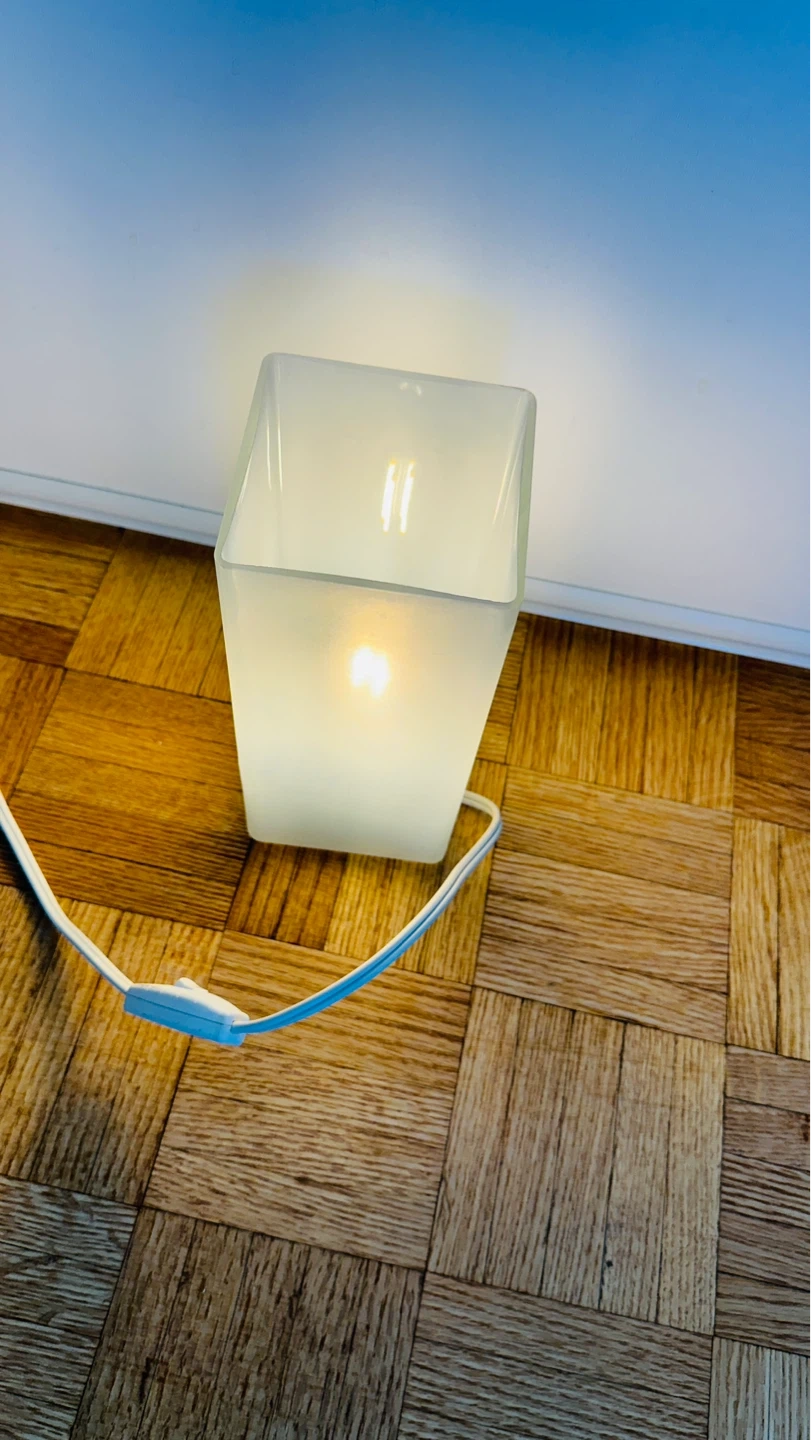 This IKEA Frost lantern lamp provides a soft, ambient glow. It's made of frosted glass and includes a power cord with an on/off switch. It's great for creating a cozy atmosphere in any room.